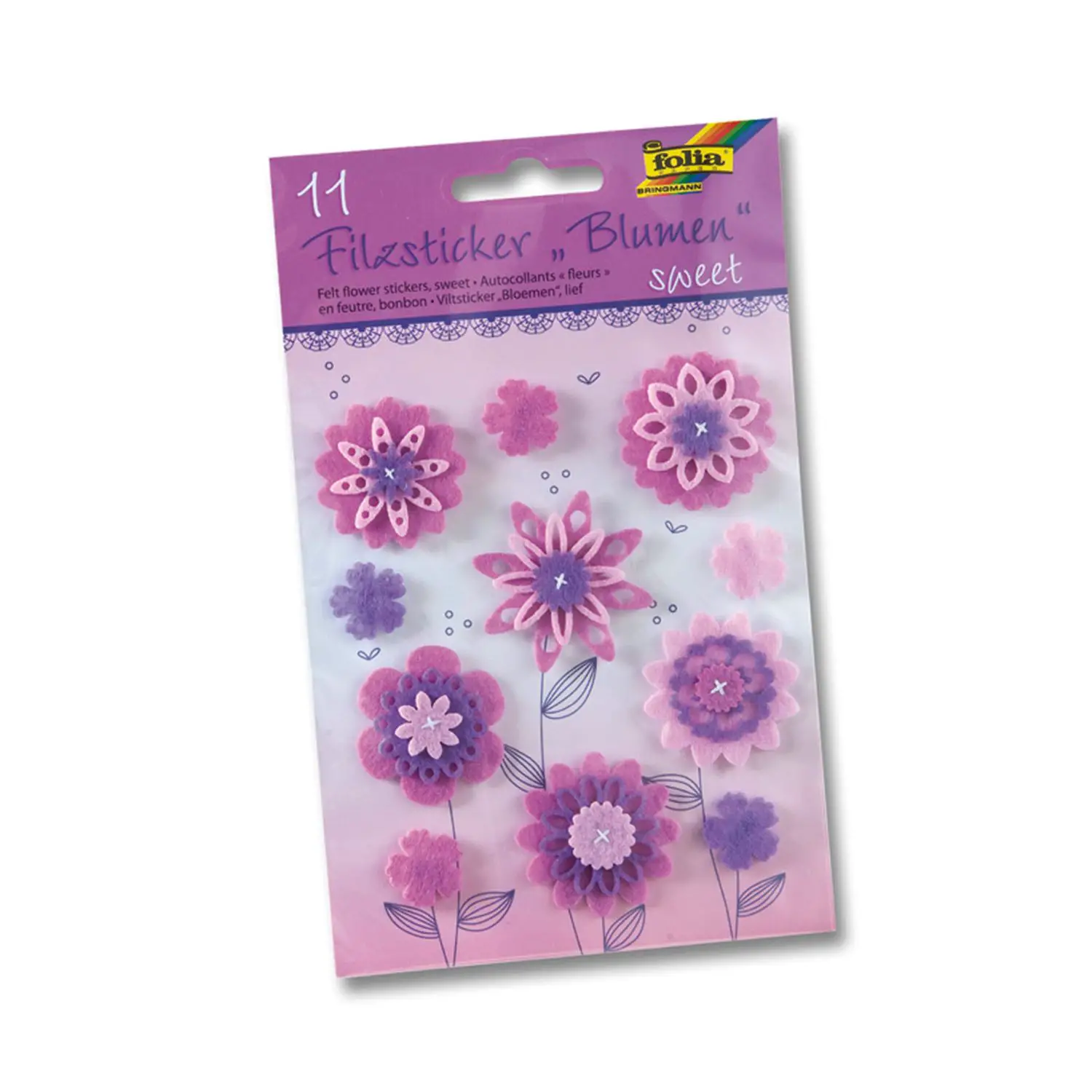 Fiori in Feltro Autoadesivi – 11 Pezzi - Rosa