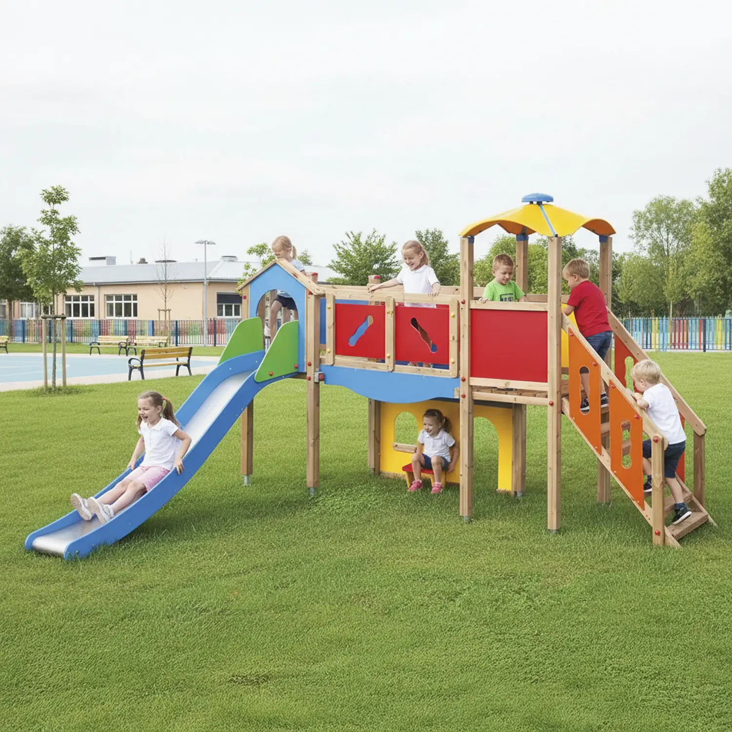 - ✅ Playground sicuro e certificato, ideale per parchi giochi, scuole e giardini pubblici.