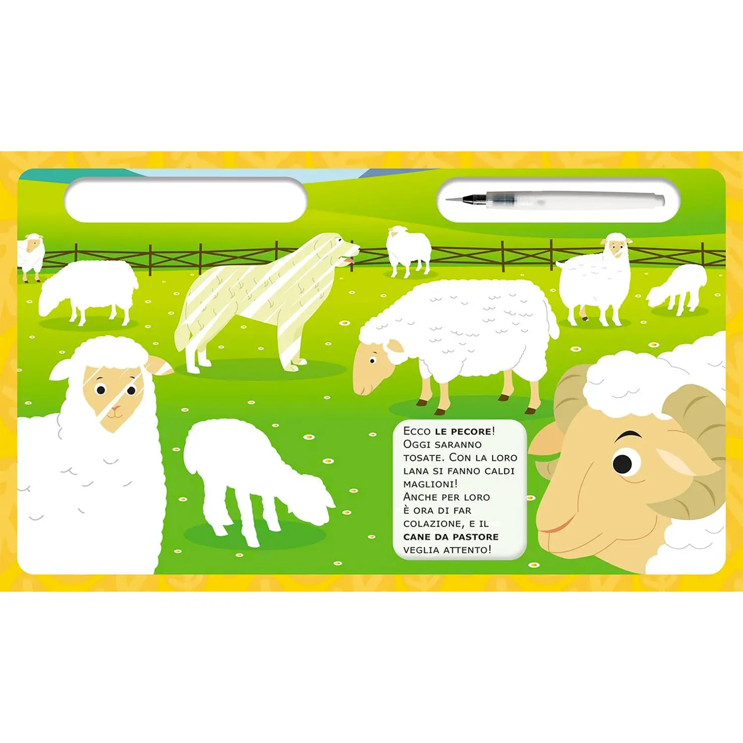 Scopri i colori con la magia dell’acqua: Con Gli Animali della Fattoria Acquacolor, i bambini possono colorare con l’acqua e vedere le immagini prendere vita per magia! Quando la pagina si asciuga, i colori scompaiono e il gioco ricomincia da capo.