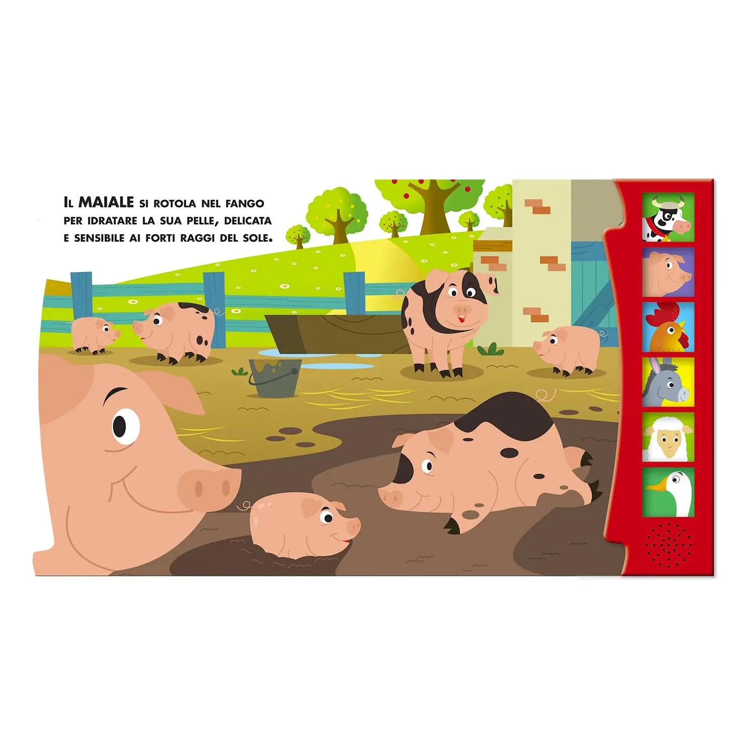 Ascolta e impara giocando: Basta premere i tasti sonori per sentire il grugnito del maiale, il muggito della mucca, o il rombo dei veicoli da lavoro, trasformando la lettura in un’esperienza coinvolgente e interattiva.