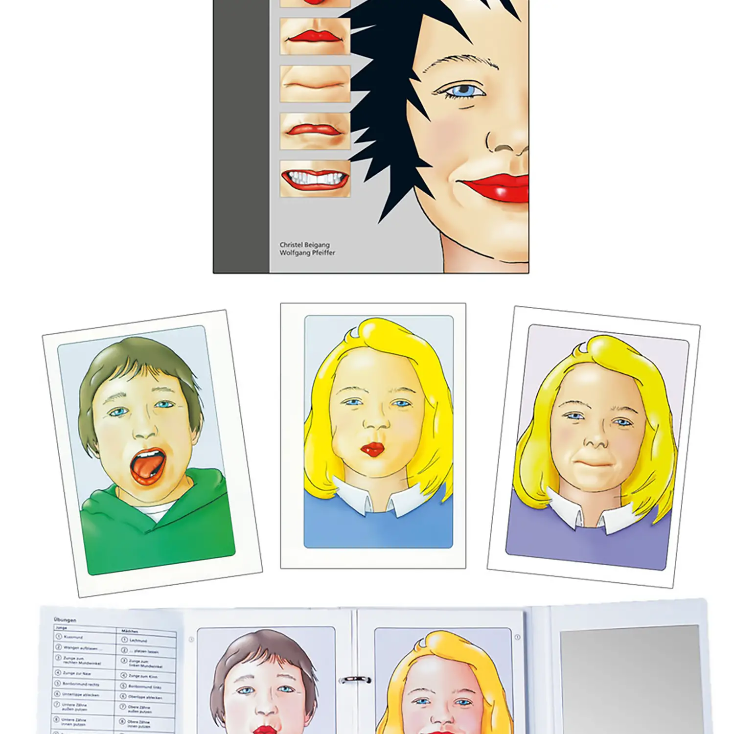 Un kit educativo completo pensato per migliorare la pronuncia e l’articolazione nei bambini, attraverso esercizi mirati per labbra, guance e lingua, con supporto visivo immediato grazie allo specchio incluso.