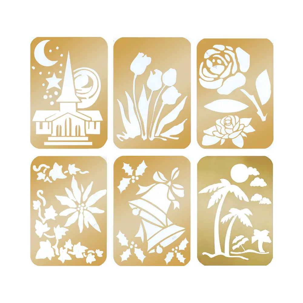 - ✅ Set di 6 stencil in acciaio con disegni dettagliati per lavori di embossing precisi ed eleganti.