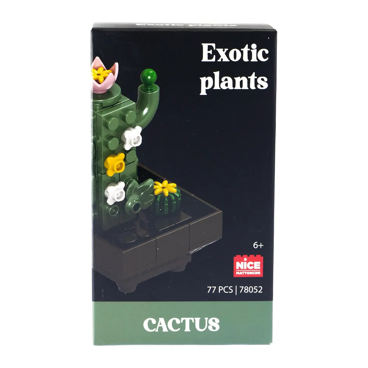MATTONCINI PIANTE ESOTICHE: questo set di costruzioni di una pianta Cactus presenta elementi in plastica, Lego compatibili, che permettono di creare una composizione che non appassisce mai. Perfetto come idea regalo in occasione della Festa della Mamma o per altre ricorrenze e anniversari. ABILITA’: il gioco aiuta a sviluppare le capacità manuali ed a stimolare la fantasia dei bambini che possono inventare nuove combinazioni tra la base della pianta e il posizionamento dei petali o fiori. Collezionali per creare il giardino di piante esotiche completo. DIMENSIONI: Base 4,5 cm; Altezza 8 cm; Profondità 4,5 cm; apertura pianta 5 cm circa. CONTENUTO: 1 kit di mattoncini per costruire 1 pianta esotica Cactus. Prodotto ORIGINALE Nice Mattoncini. Età consigliata: 6+