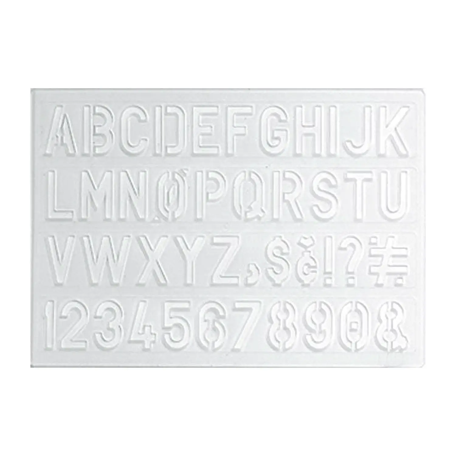 - ✅ Mascherina in plastica trasparente con lettere maiuscole, numeri e simboli da 20 mm.