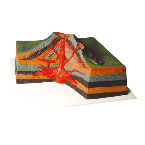 • ✅ Modello dettagliato che mostra la struttura interna di un vulcano, inclusi camera magmatica e cratere.