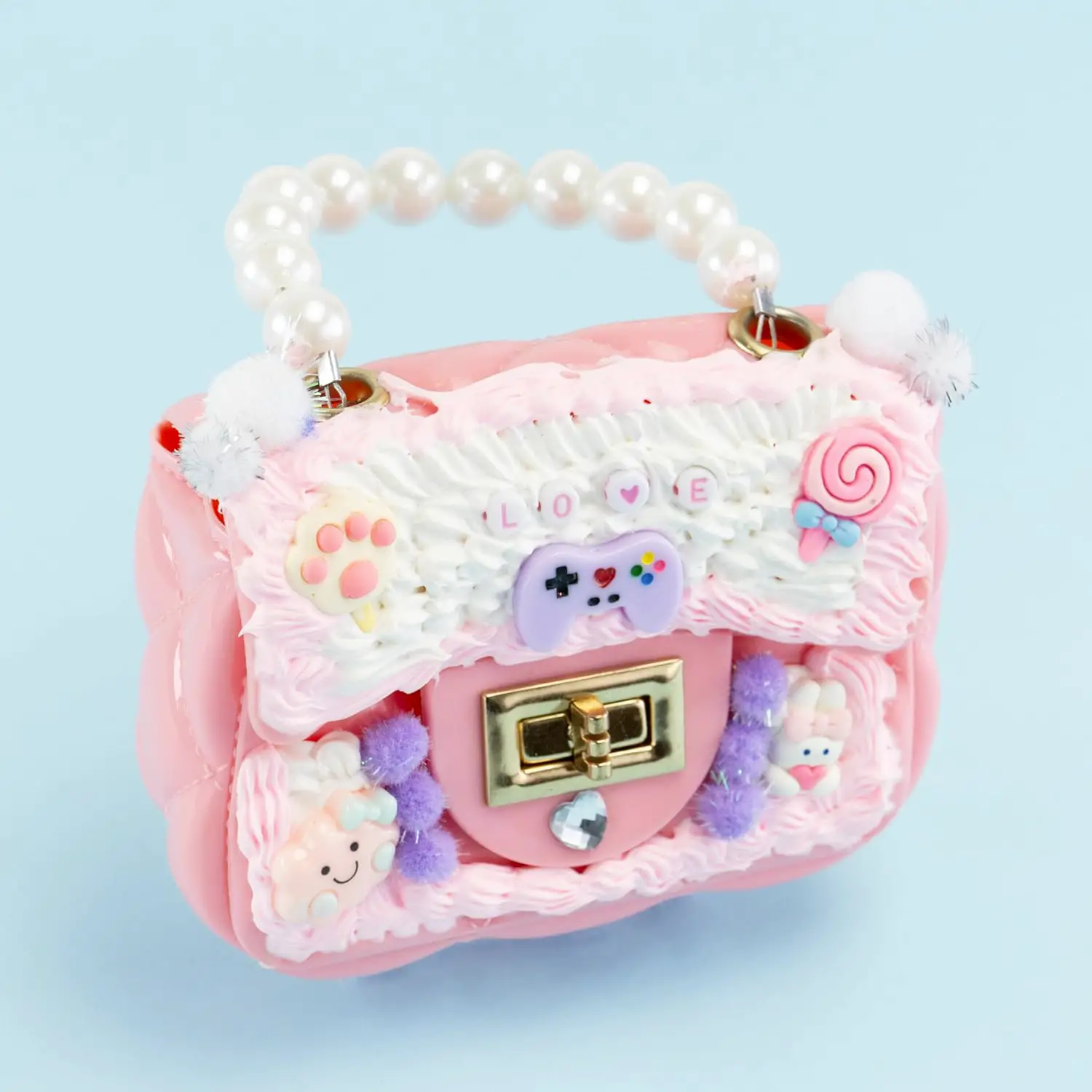 Tutto l’occorrente per personalizzare All’interno del kit troverai una borsetta da decorare (disponibile in due colori), due creme per decorazioni, beccucci, spatola, pinze, charms, perline e pon-pon. Ogni elemento è pensato per rendere il processo di personalizzazione facile e creativo.