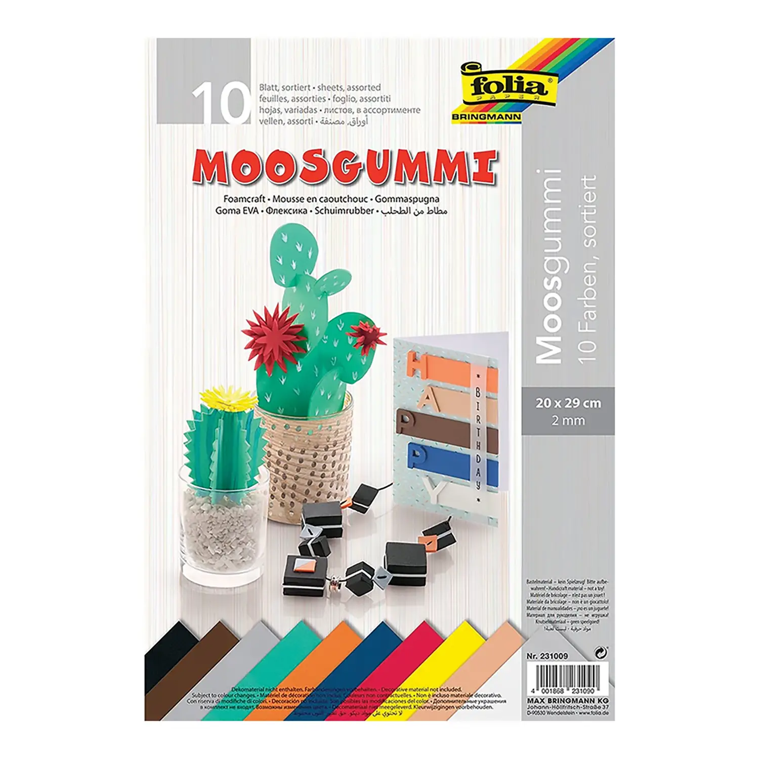 Contenuto del pacchetto: 10 fogli in 10 colori diversi. Dimensioni: 20x29 cm ciascuno. Spessore: 2 mm.