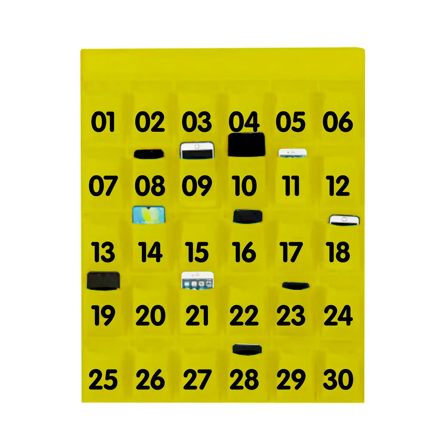 Organizer da parete per smartphone, ideale per la classe: Questo pratico organizer è la soluzione perfetta per riporre fino a 30 smartphone in tasche numerate, assicurando ordine e sicurezza in aula. Dimensioni: 87 x 66 cm.