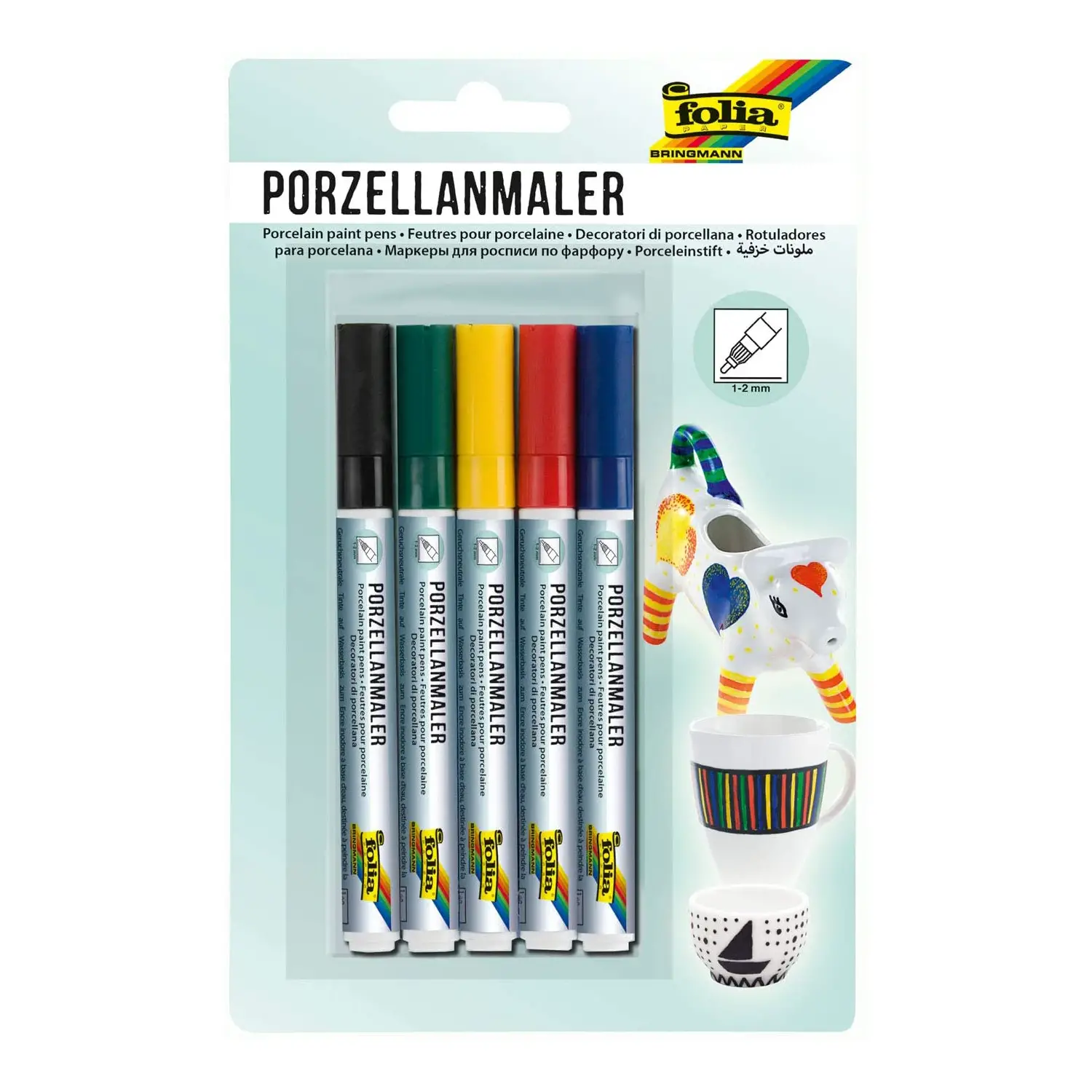 - ✅ Set di 5 pennarelli con punta in fibra da 1/2 mm, ideali per decorare ceramica, vetro e materiali resistenti al calore.