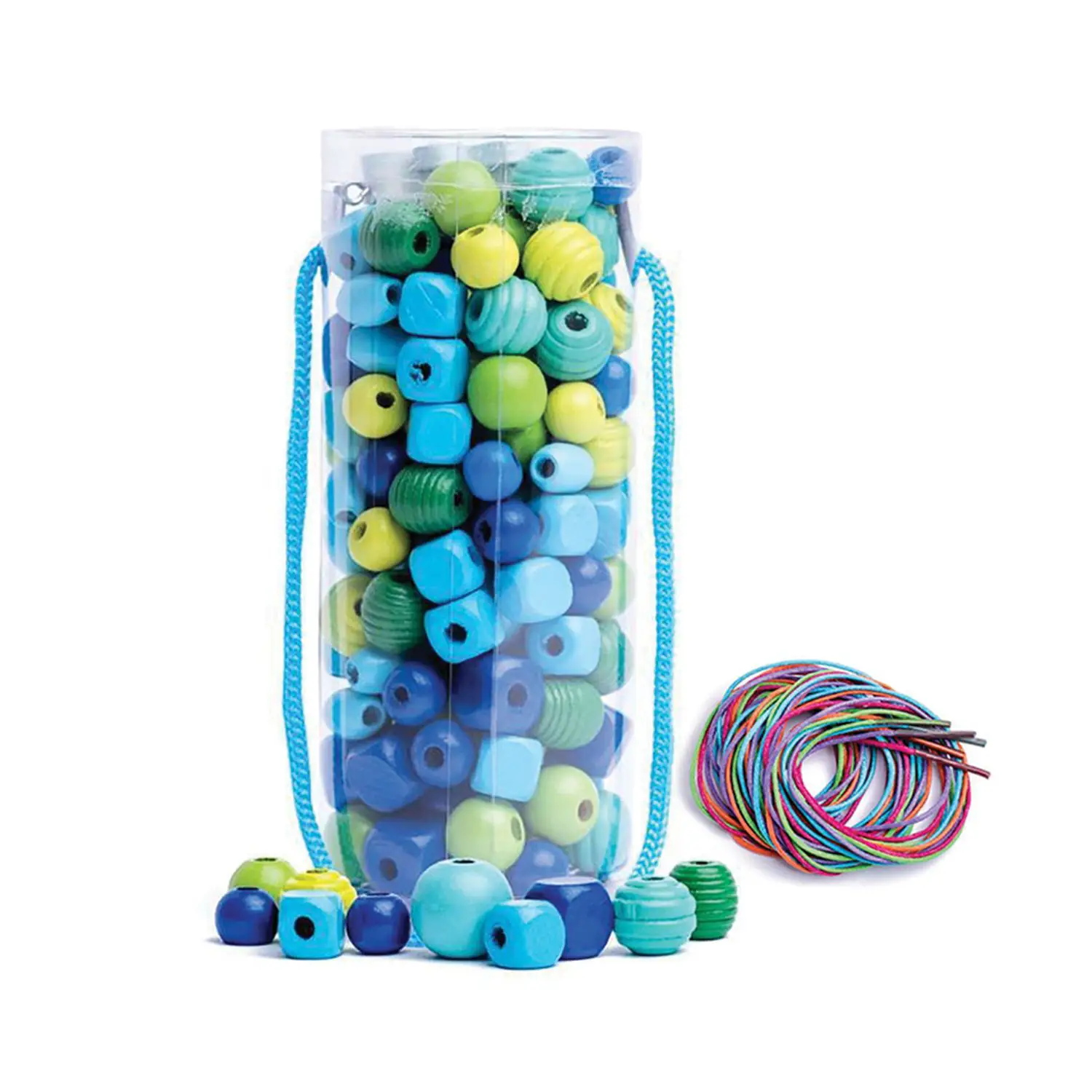 Un set di perle colorate in legno, perfetto per stimolare la creatività e realizzare gioielli o decorazioni personalizzate. Ideale per bambini, appassionati di fai-da-te o per attività ludico-educative.