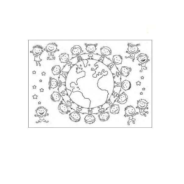 - ✅ Cartellone da colorare raffigurante il mondo con bambini felici in girotondo.