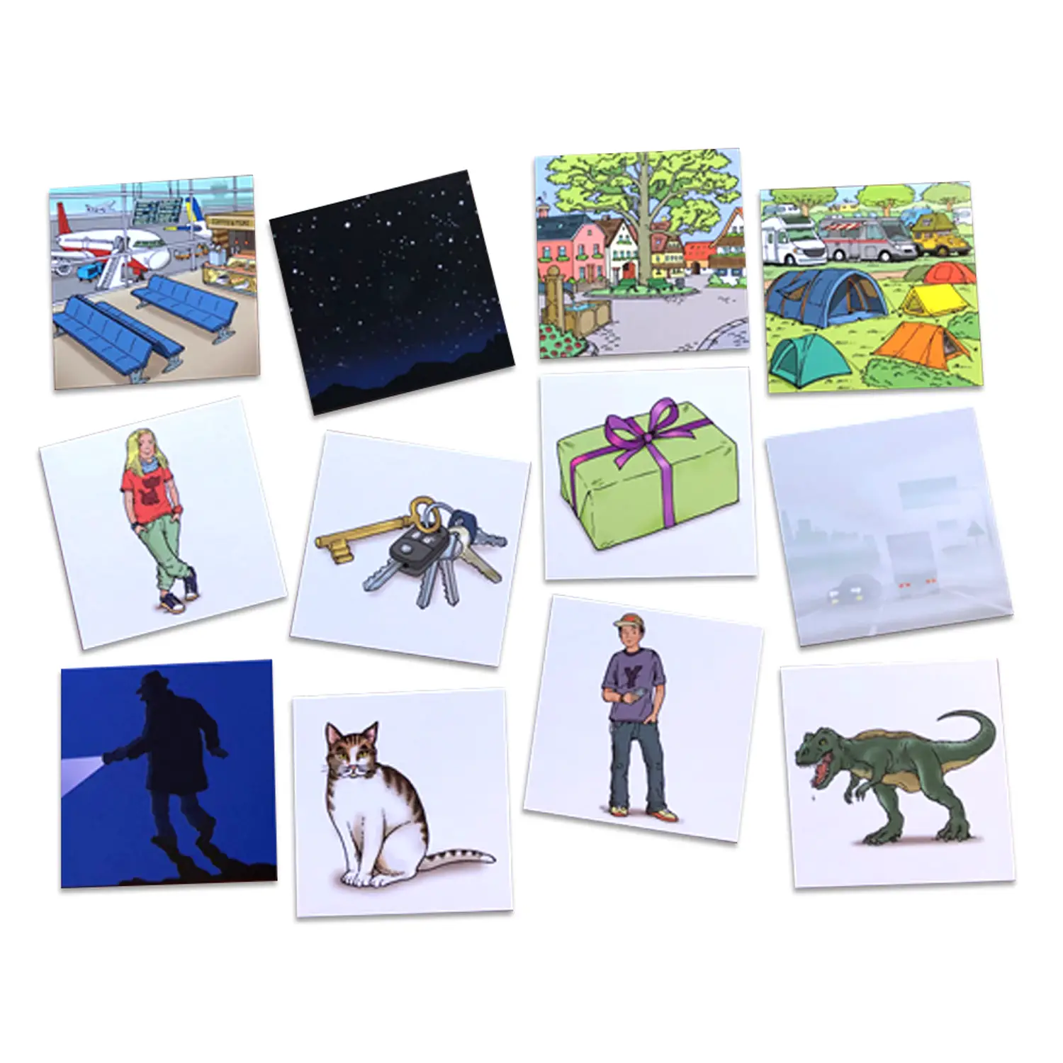 - Inventare Storie con Immagini: Ogni tessera contiene immagini colorate e dettagliate per creare racconti sempre diversi e stimolanti.