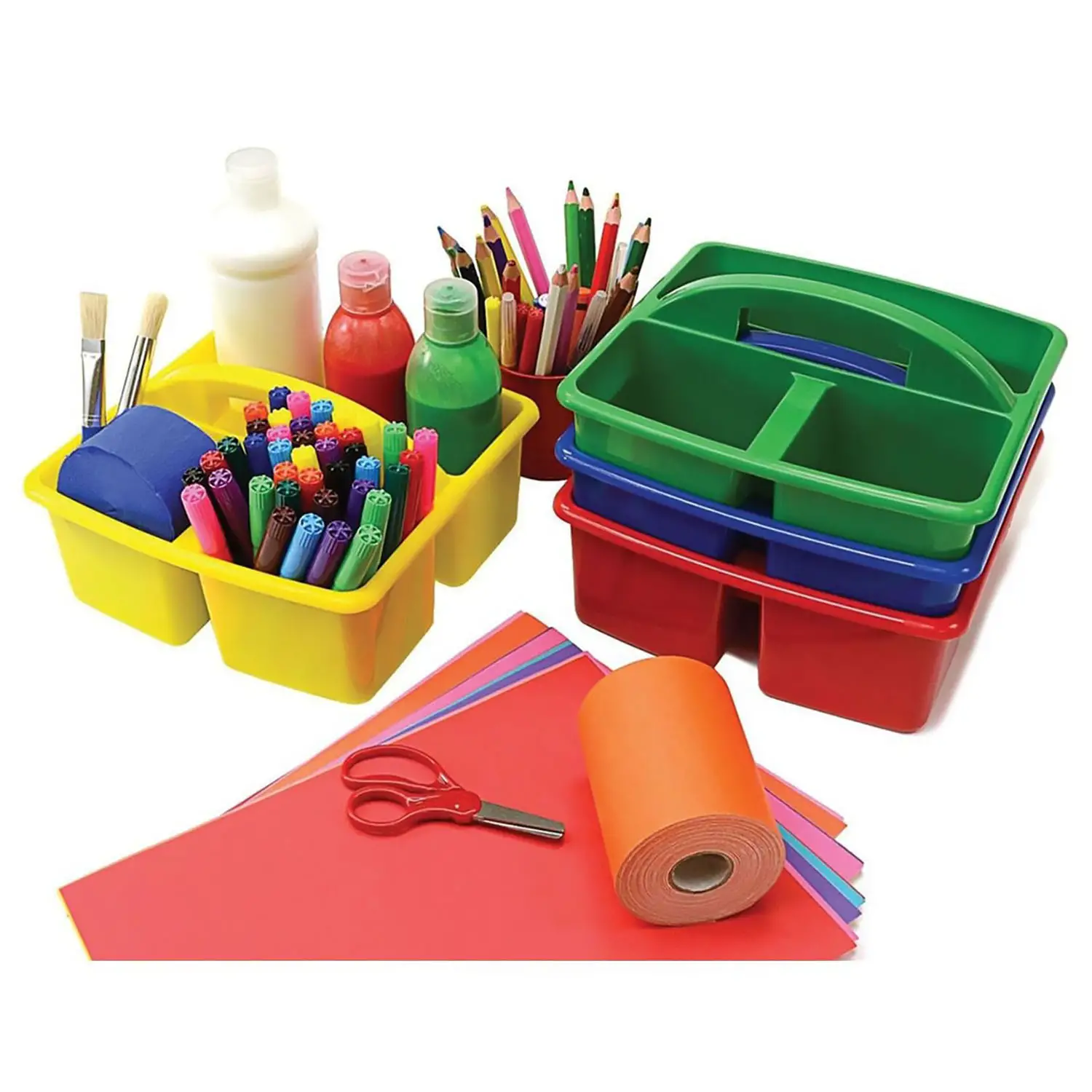 - ✅ Set di 4 contenitori in plastica robusta, ideali per aule e ambienti scolastici.