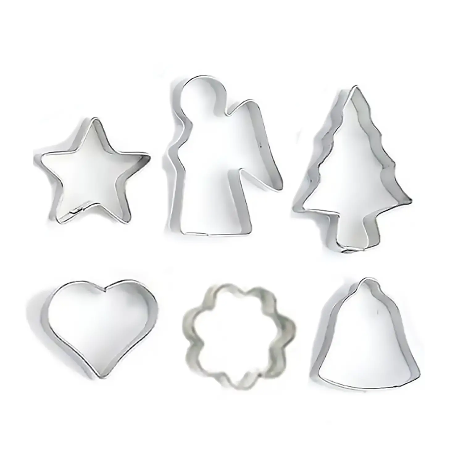 Set 6 Formine Medie in Metallo: campana - abete - angelo - fiore - cuore - stella