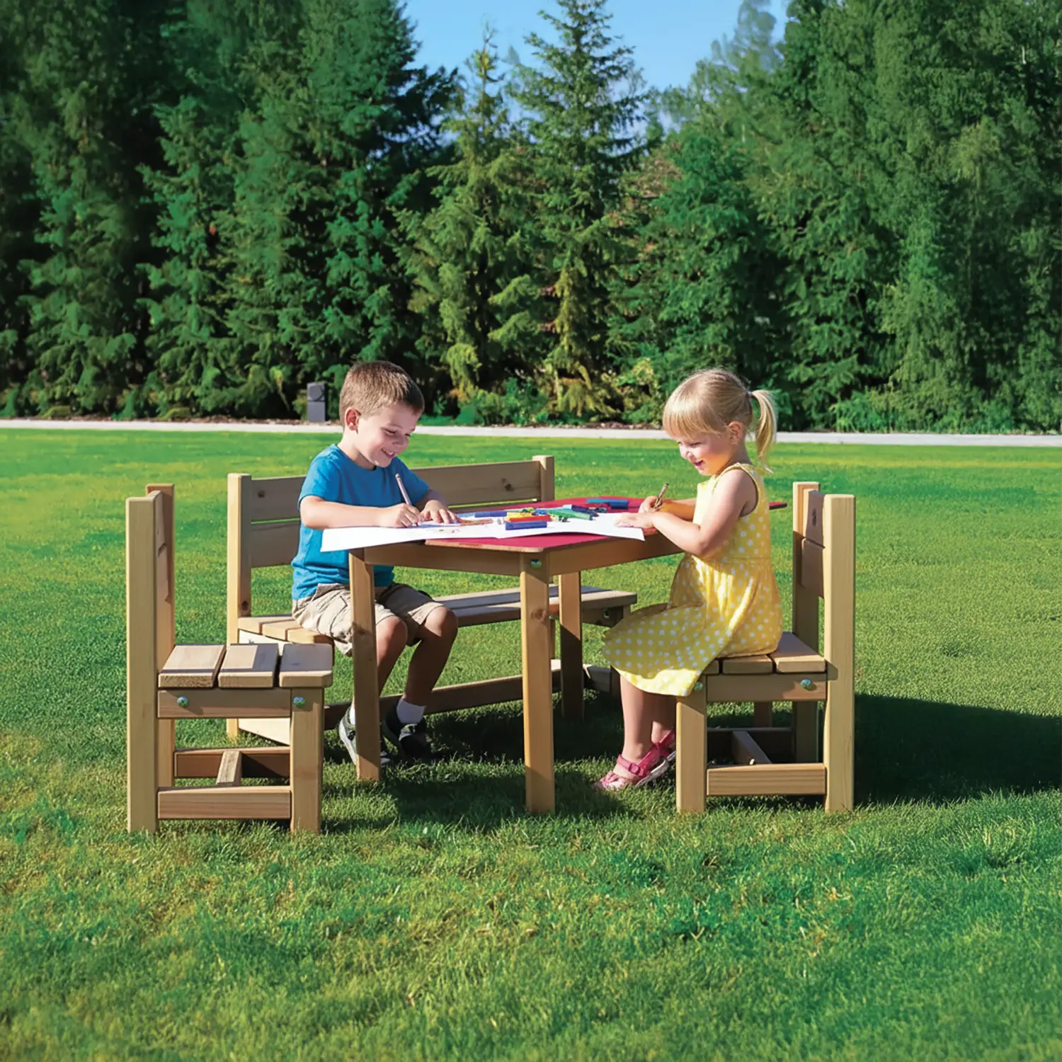 Questo set tavolo con panche baby da esterno trasforma ogni momento all’aperto in un’esperienza sicura, divertente e confortevole per i più piccoli, perfetto per giochi, merende e attività creative all’aperto.