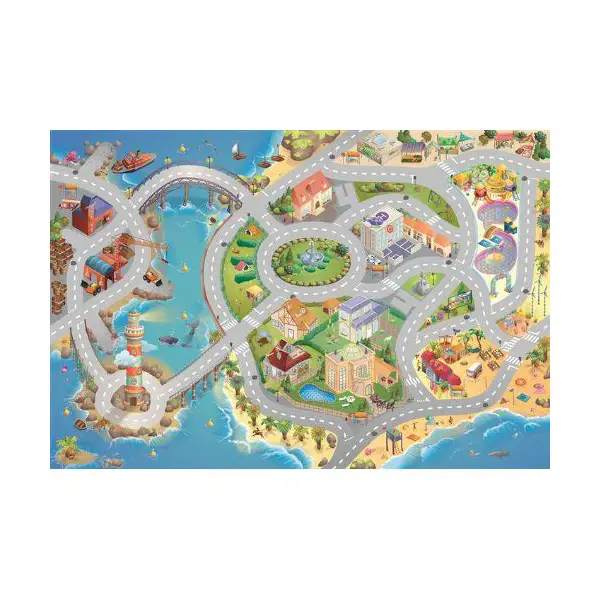 Porta la città e il porto direttamente nella stanza dei giochi con questo tappeto dettagliato, perfetto per stimolare l’immaginazione e il gioco creativo dei bambini. Ideale per macchinine, barche giocattolo e attività di storytelling.