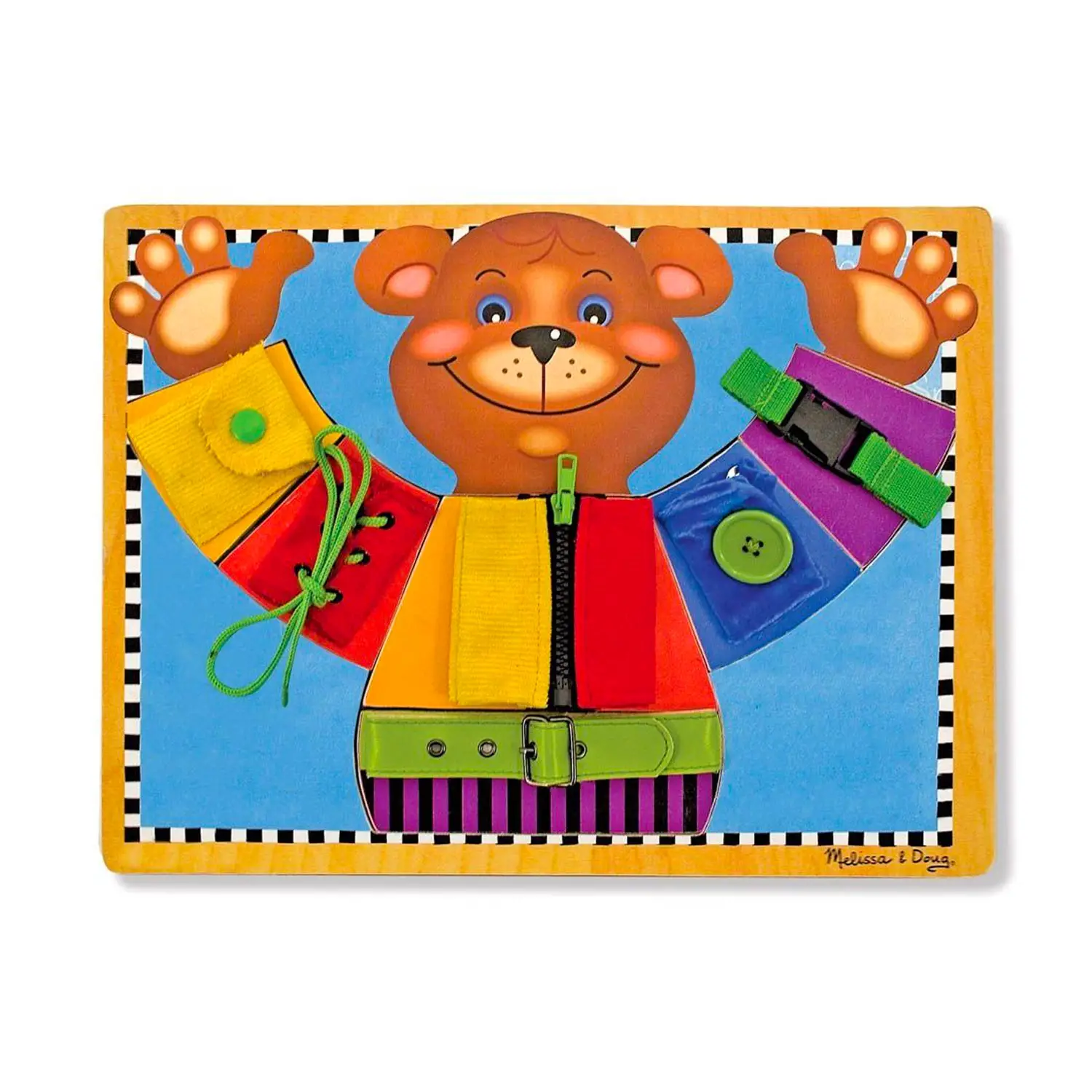 Un simpatico orsetto accompagna i più piccoli nella scoperta delle attività quotidiane! Questa tavola illustrata multicolore aiuta i bambini a sviluppare autonomia e motricità fine, grazie a 6 diversi elementi da allacciare, abbottonare, tirare e chiudere. Ogni tavola stimola l’apprendimento attraverso il gioco, migliorando coordinazione e concentrazione. I bambini si divertiranno ad imparare a fare nodi, chiudere ed aprire zip, infilare un bottone, imparare a vestirsi e così via…..per un divertimento senza fine!!! Ideale per attività individuali o di gruppo, perfetto per il nido e la scuola dell’infanzia.