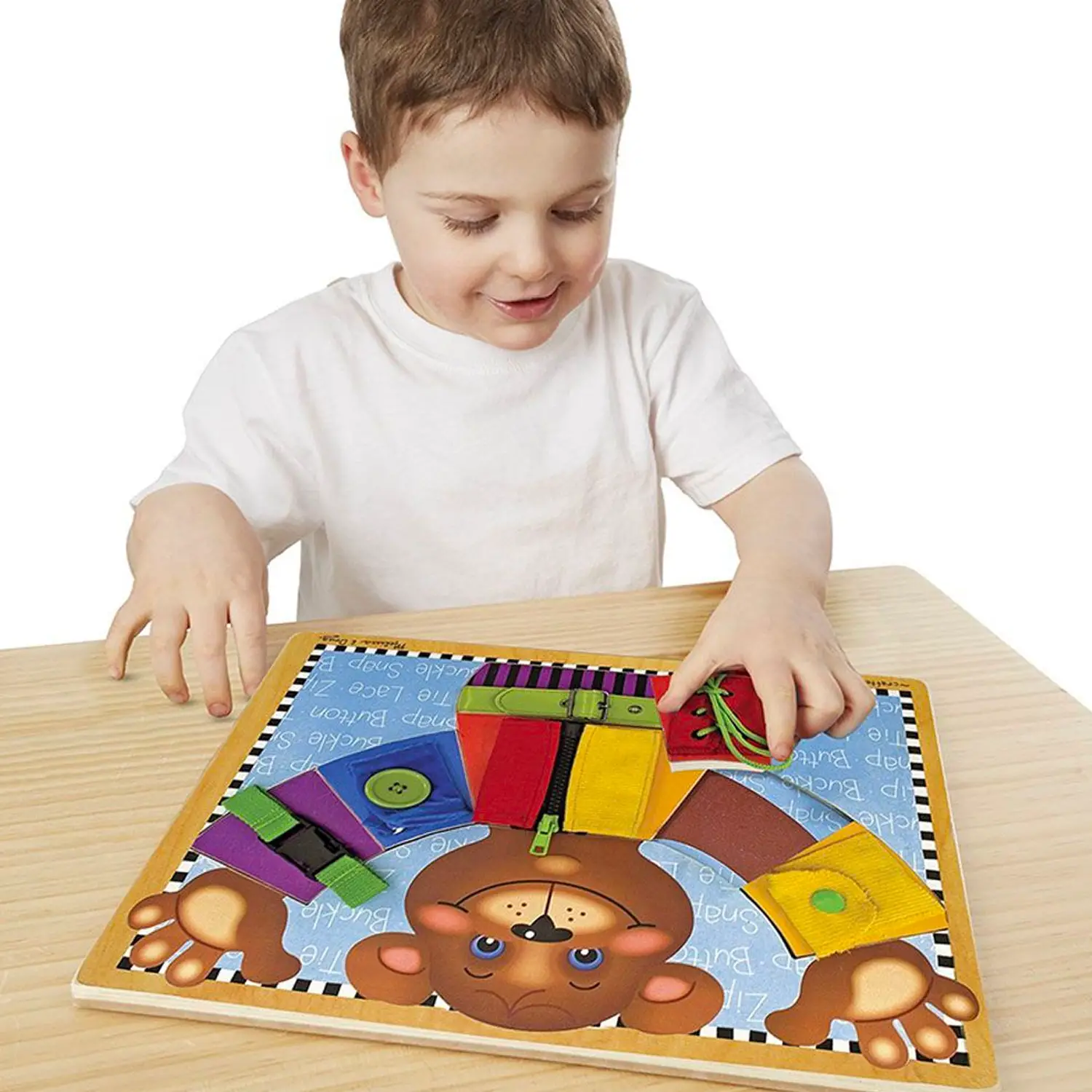 - ✅ Include 6 elementi interattivi da allacciare, abbottonare, tirare e chiudere
