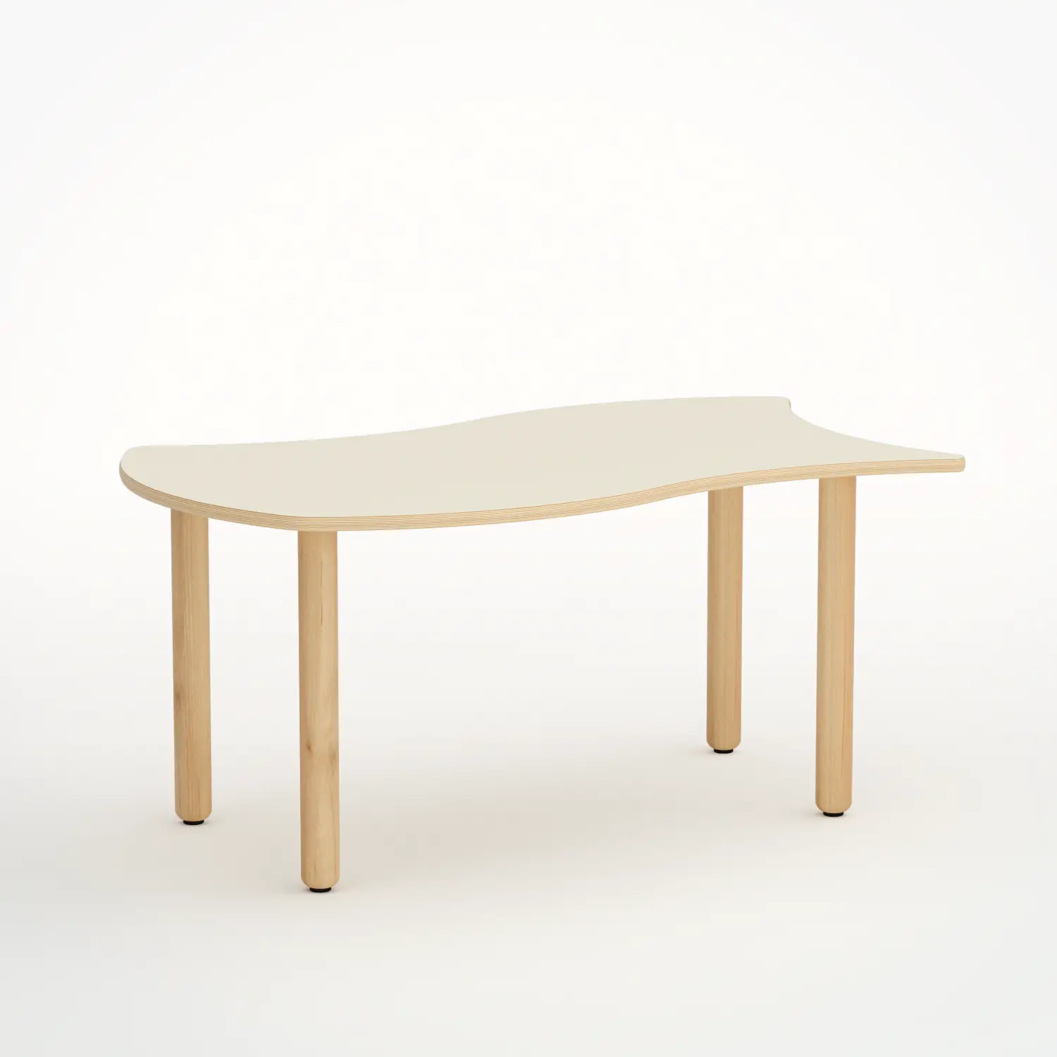 Materiali di Alta Qualità Piano multistrato di betulla 22 mm con bilaminato plastico colorato. Antiriflesso, antigraffio e lavabile. Bordo arrotondato con vernice trasparente atossica. - Conforme CAM Criteri Ambientali Minimi. Design Funzionale Gambe in faggio massello ø 60 mm, verniciate con vernice trasparente atossica. Gommini antisdrucciolo per stabilità e sicurezza. Versatilità e Composizioni Sagoma a “onda” per infinite composizioni. Massimizza l’uso dello spazio, ideale per scuole d’infanzia. Sicurezza e Dimensioni Spigoli e bordi arrotondati per sicurezza. Dimensioni: 70x120 cm, altezza 52 cm. Perfetto per ambienti scolastici.