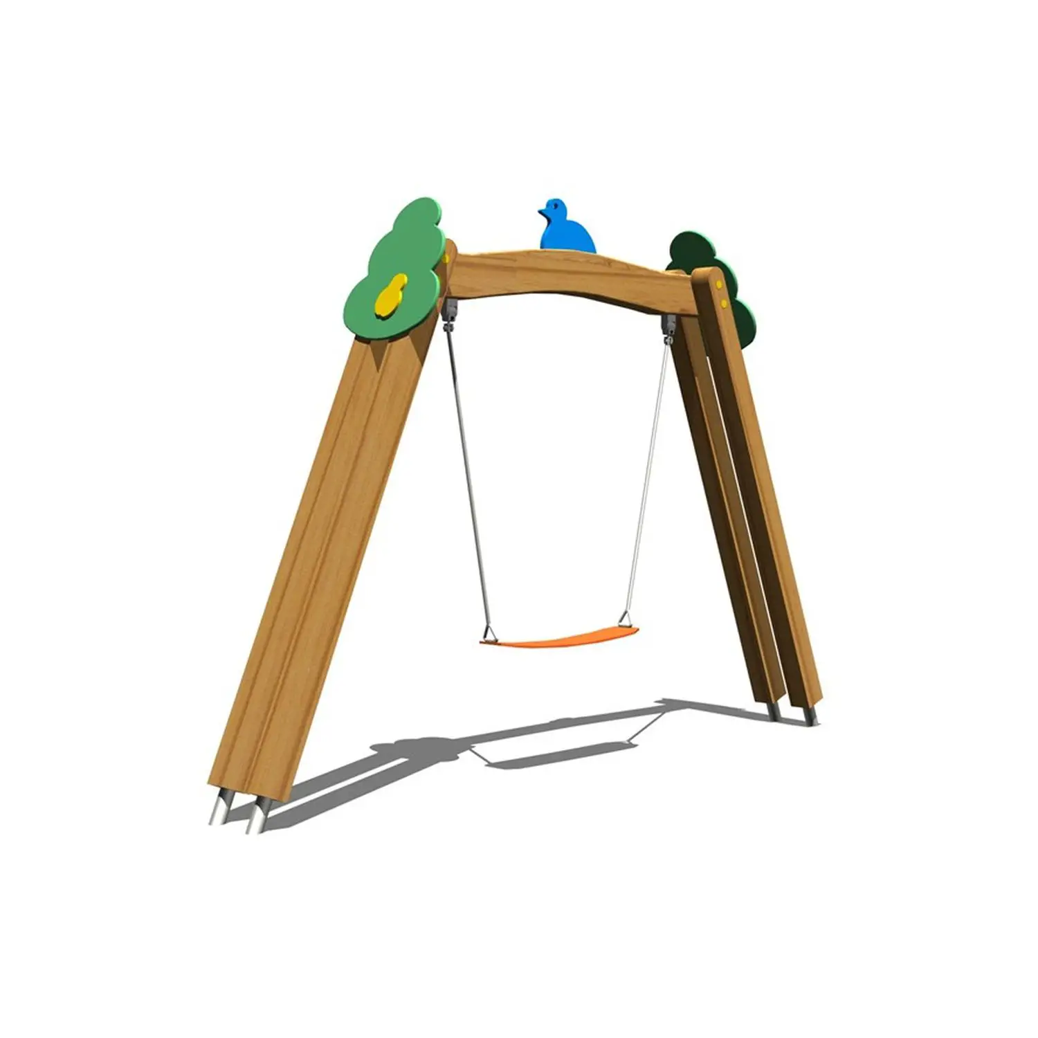 - Materiale: legno lamellare certificato PEFC-FSC, acciaio, gomma antitrauma