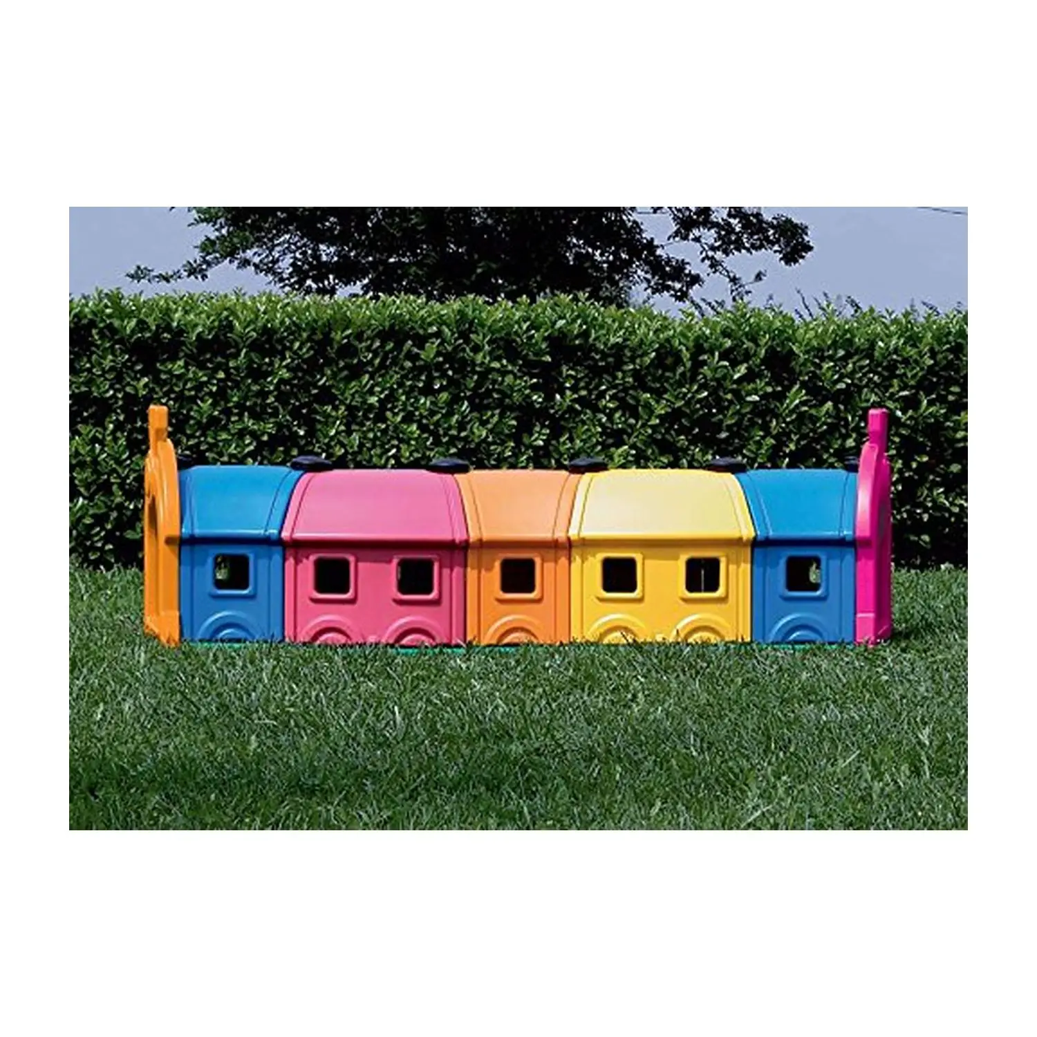 Le finestrelle laterali garantiscono aerazione e illuminazione interna, mentre la sagoma modulare permette di creare percorsi lunghi e personalizzabili.