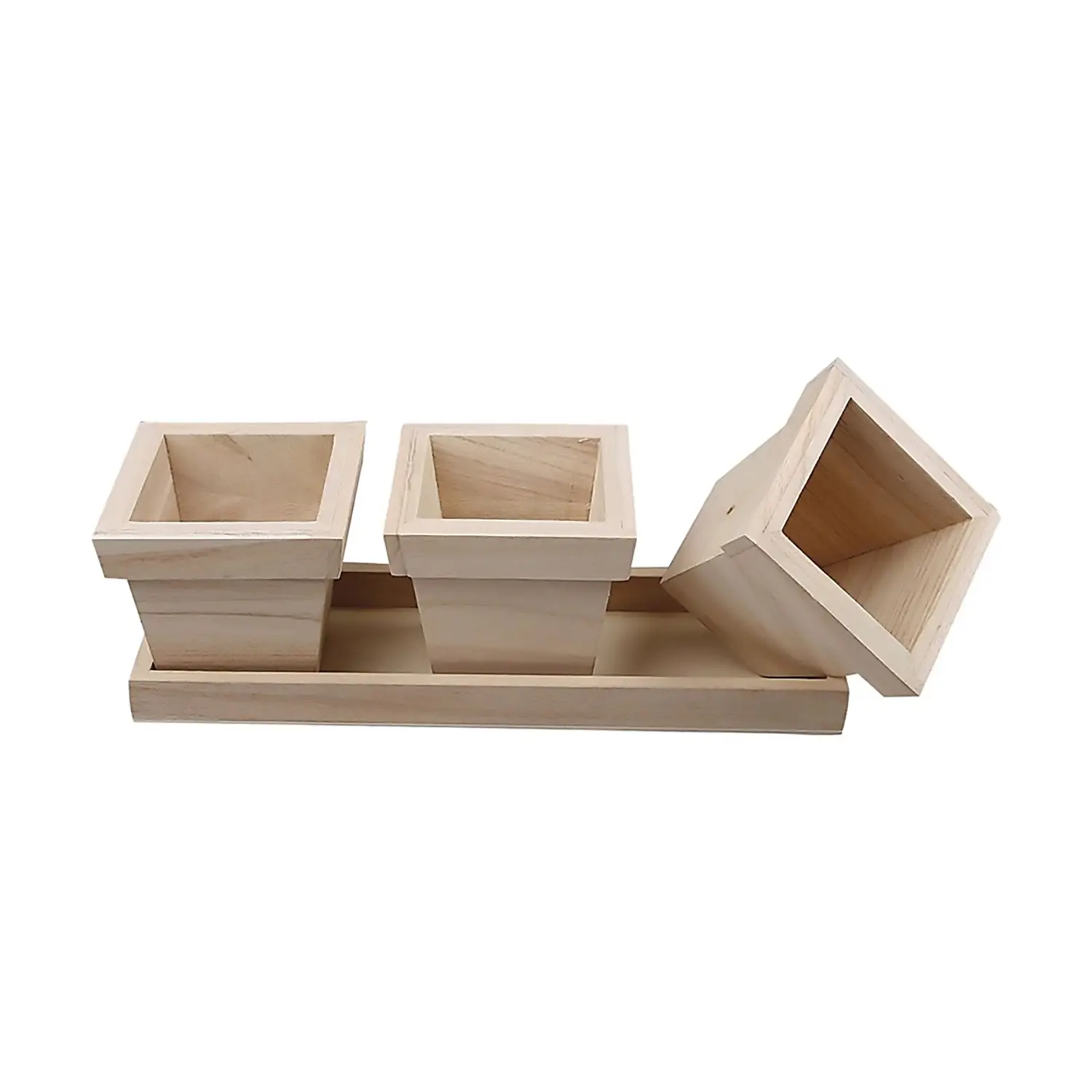 - ✅ Set composto da 3 vasetti in legno e un vassoio oblungo da 27x9 cm, ideale per piante o oggetti.