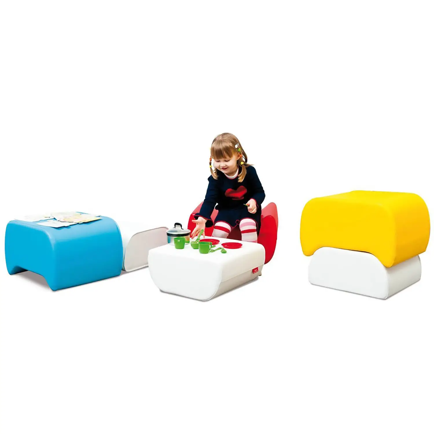 Queste sedute morbide sono perfette per l’uso nella scuola dell’infanzia, incoraggiando attività educative, di gioco e di riposo in un contesto ludico e colorato.