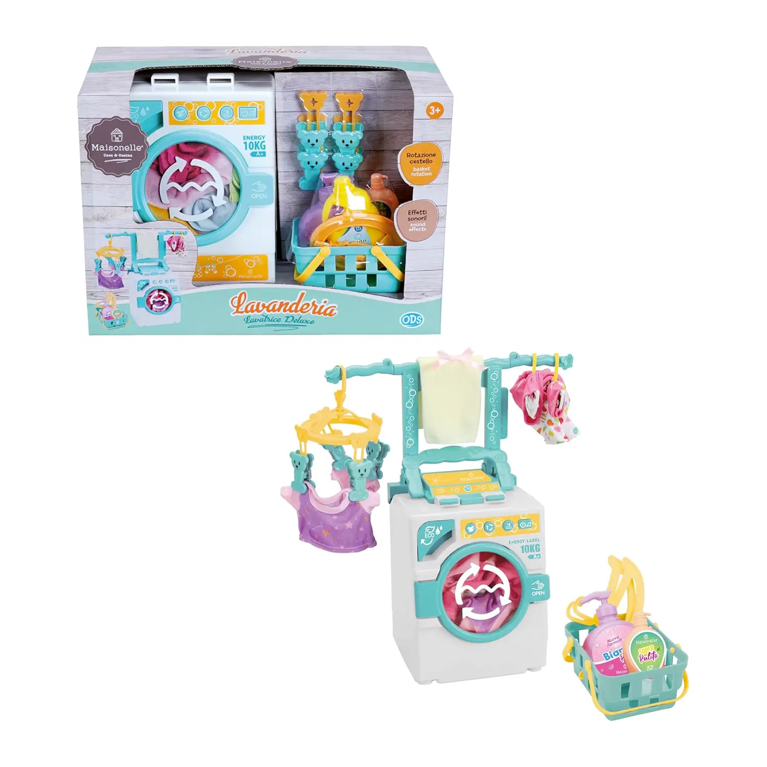 Set completo per il bucato Maisonelle Lavatrice Deluxe di ODS TOYS include tutto il necessario per simulare una lavanderia, con lavatrice giocattolo, stendino e asse da stiro. Accessori inclusi Il set comprende cestino biancheria, flaconi di detersivo, grucce e capi di vestiario per un gioco realistico. Gioco di ruolo educativo Stimola immaginazione e abilità motorie. Maisonelle Lavatrice Deluxe è perfetta per sviluppare capacità organizzative nei bambini. Design colorato e resistente Realizzato con materiali sicuri e robusti, questo set di ODS TOYS è ideale per bambini dai 3 anni in su.