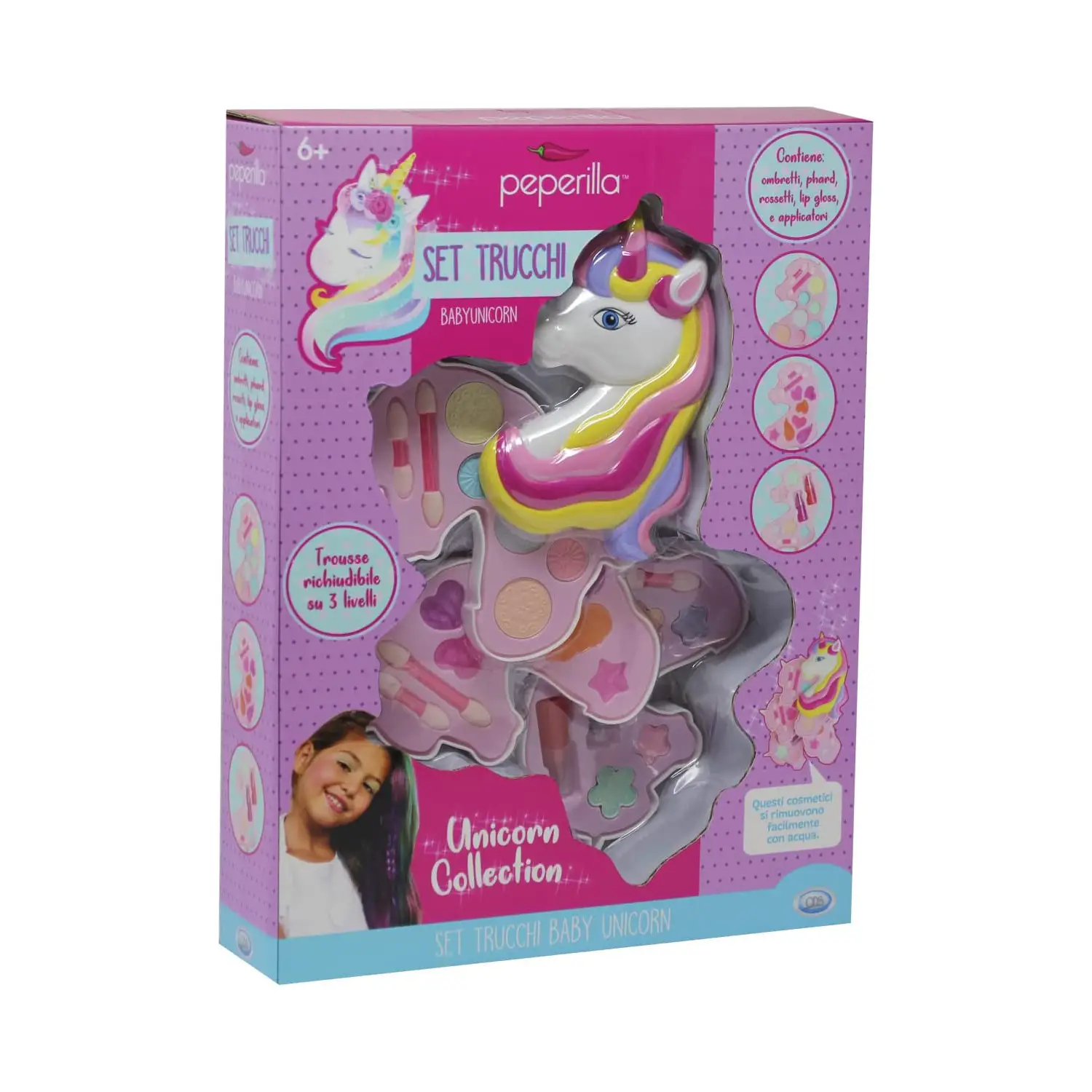 Porta magia e colore nel gioco con il Peperilla Set Trucchi Unicorn Collection, un kit completo pensato per i piccoli amanti del trucco e dell’unicorno. Perfetto per sviluppare creatività e stile, questo set trasforma ogni momento in un’esperienza di gioco fantastica e colorata.