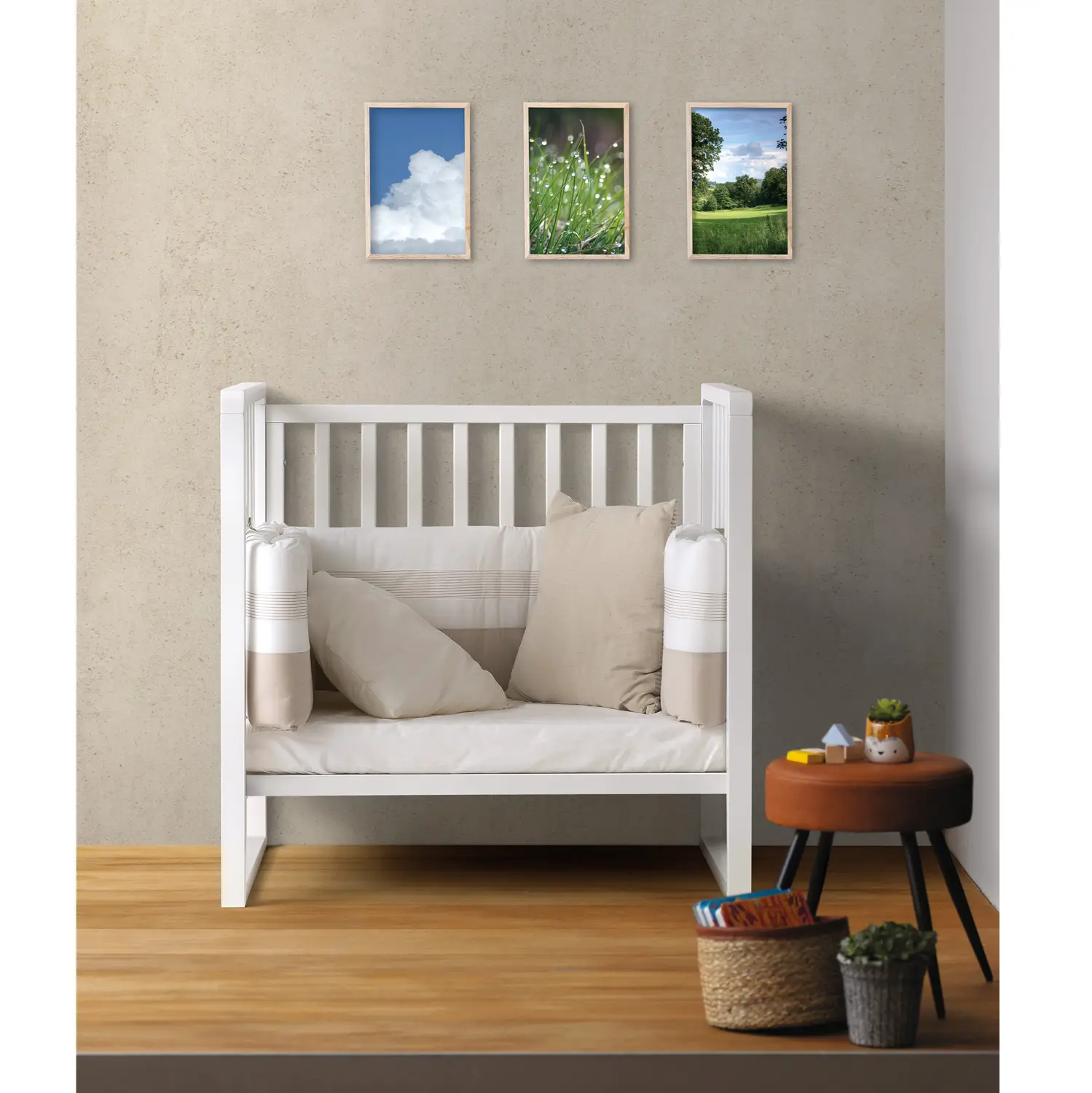 Lettino Evolutivo Trasformer Pali Bianco/Naturale 9in1 con Tessile Righe Beige