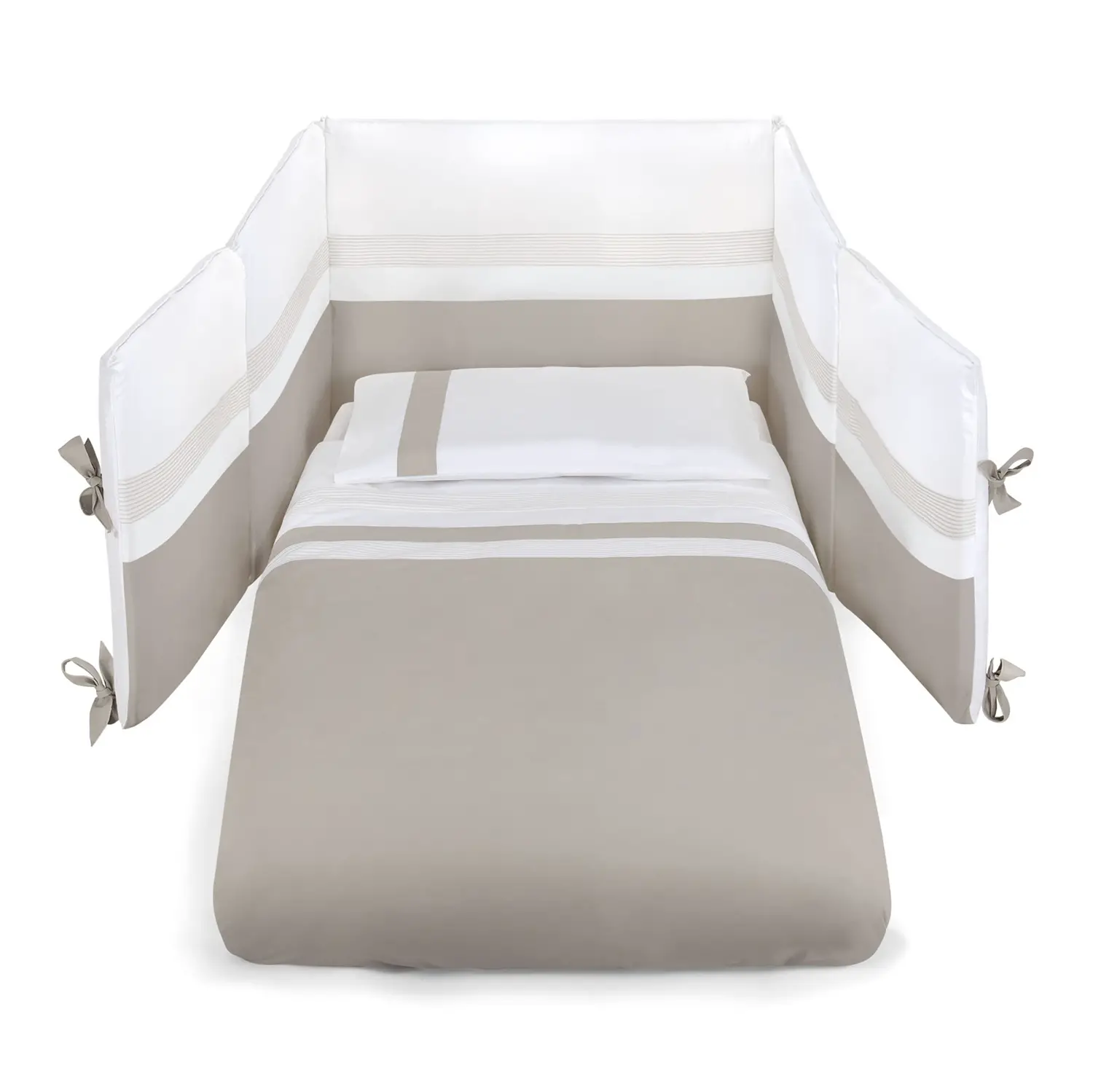 Lettino Flippy 4in1 Culla-Culla Fianco Letto- Letto e Divanetto Naturale con Tessile righe Tortora
