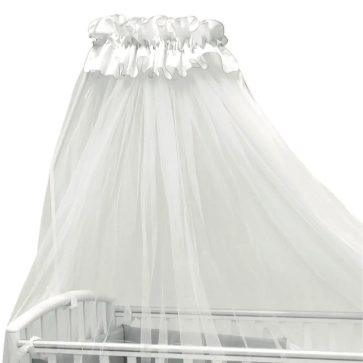Tessuto morbido e leggero Realizzato in tulle soffice e traspirante, il velo offre una copertura leggera senza compromettere la circolazione dell’aria. Ideale per mantenere freschezza e comfort all’interno del lettino.