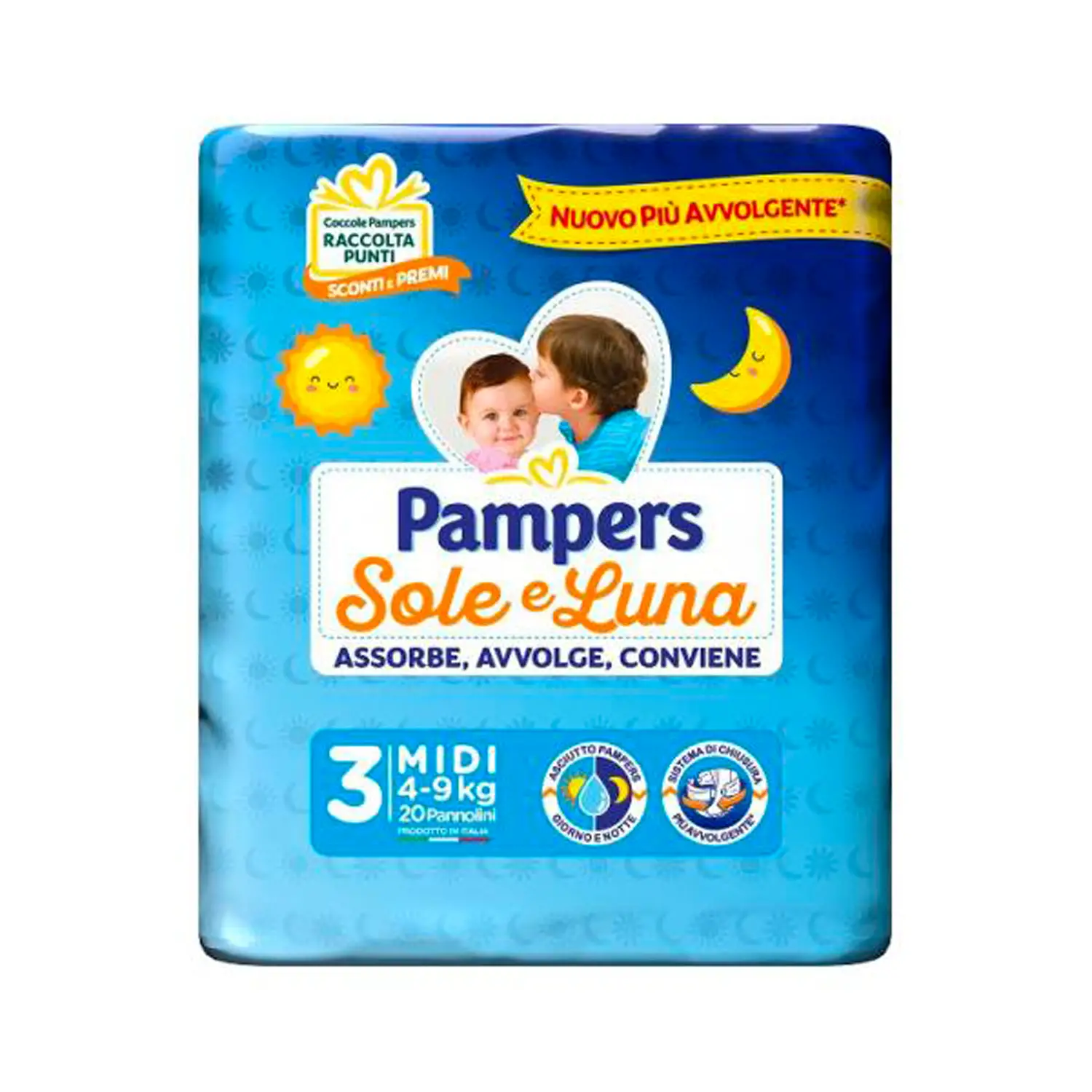 Massimo assorbimento e morbidezza per la pelle delicata del tuo bambino con Pampers Sole Luna