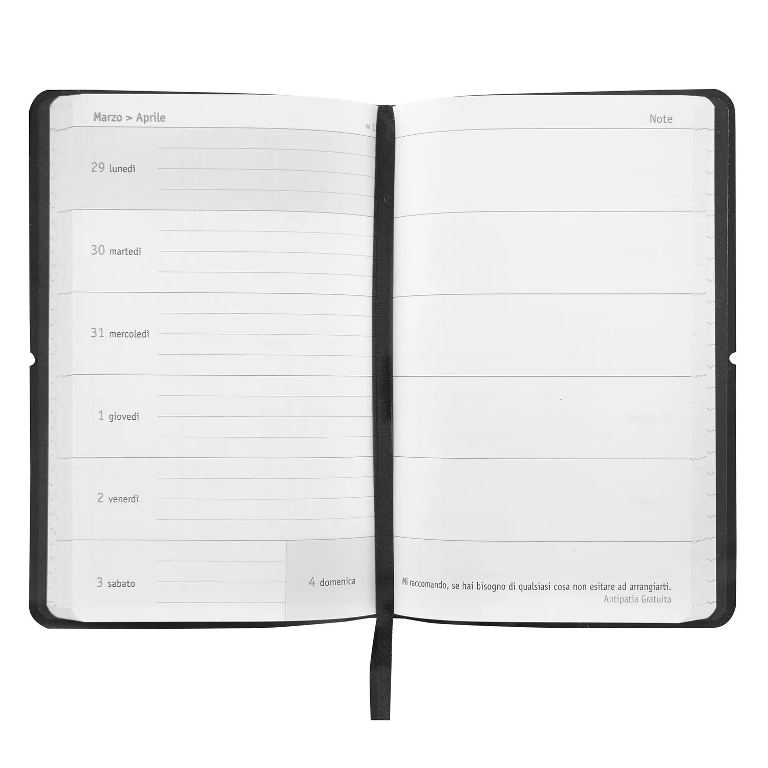 Copertina Morbida in PU con Elastico Realizzata con copertina in PU morbido e taglio al vivo, garantisce resistenza e durata nel tempo. La chiusura con elastico protegge le pagine e mantiene l’agenda sempre ordinata anche durante un utilizzo intenso.