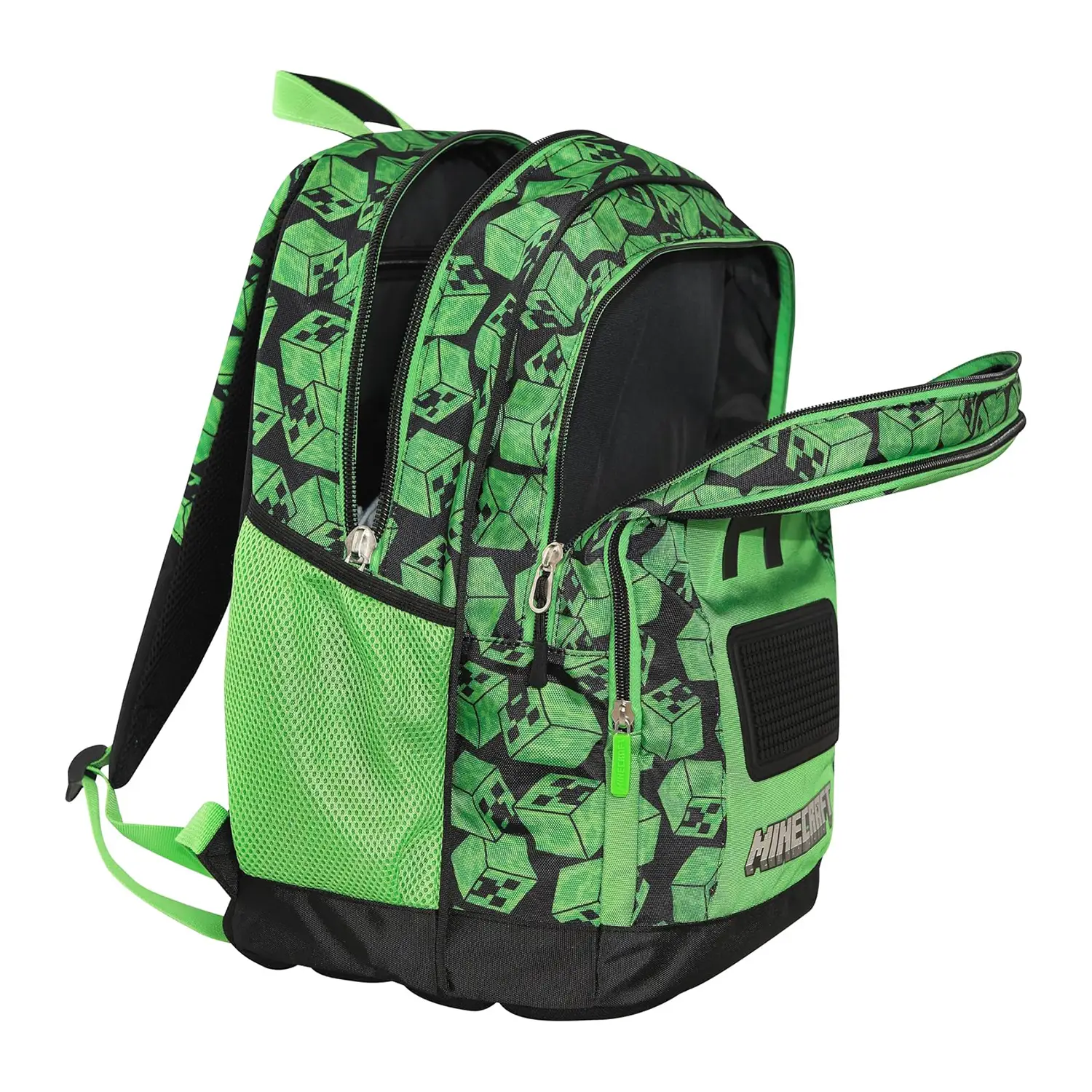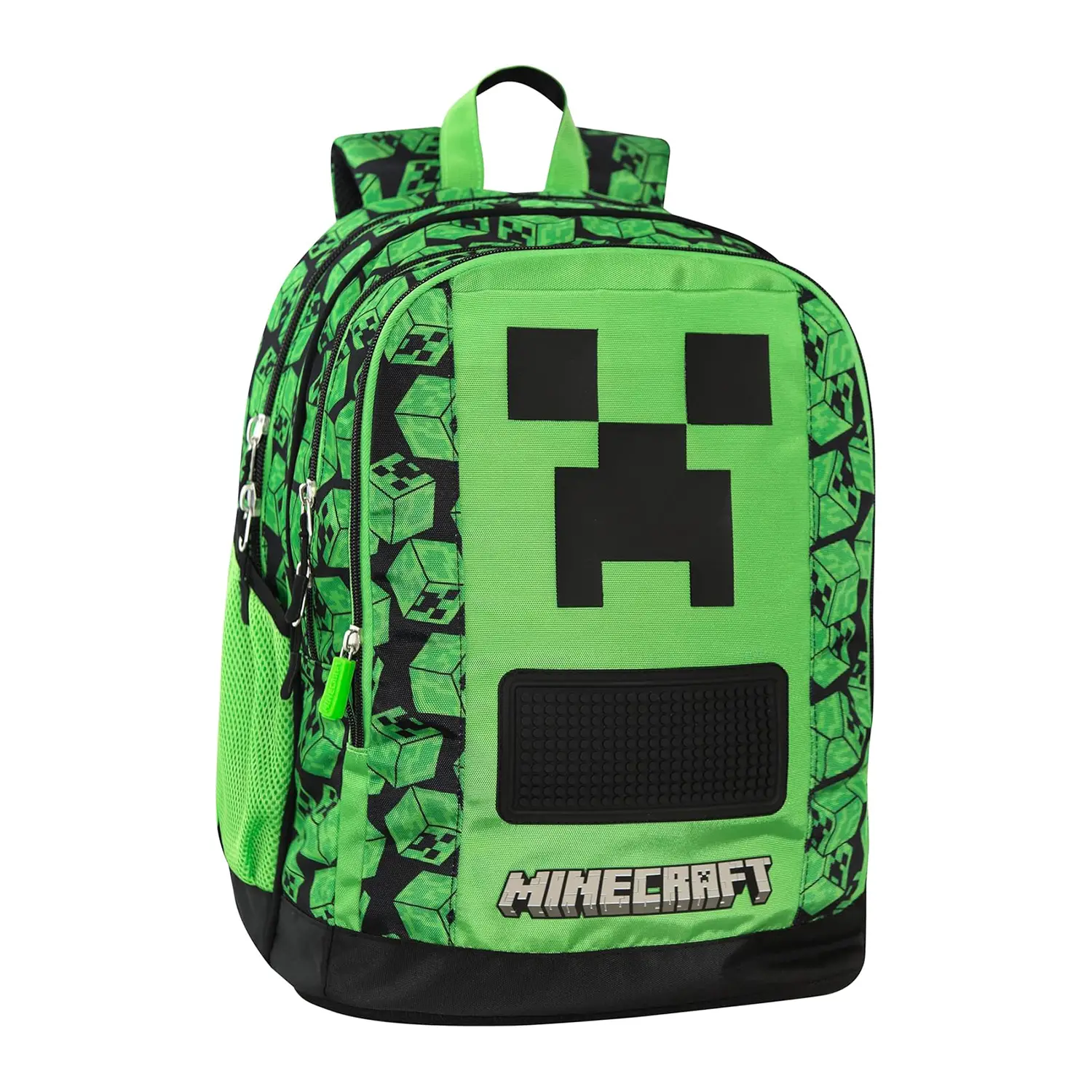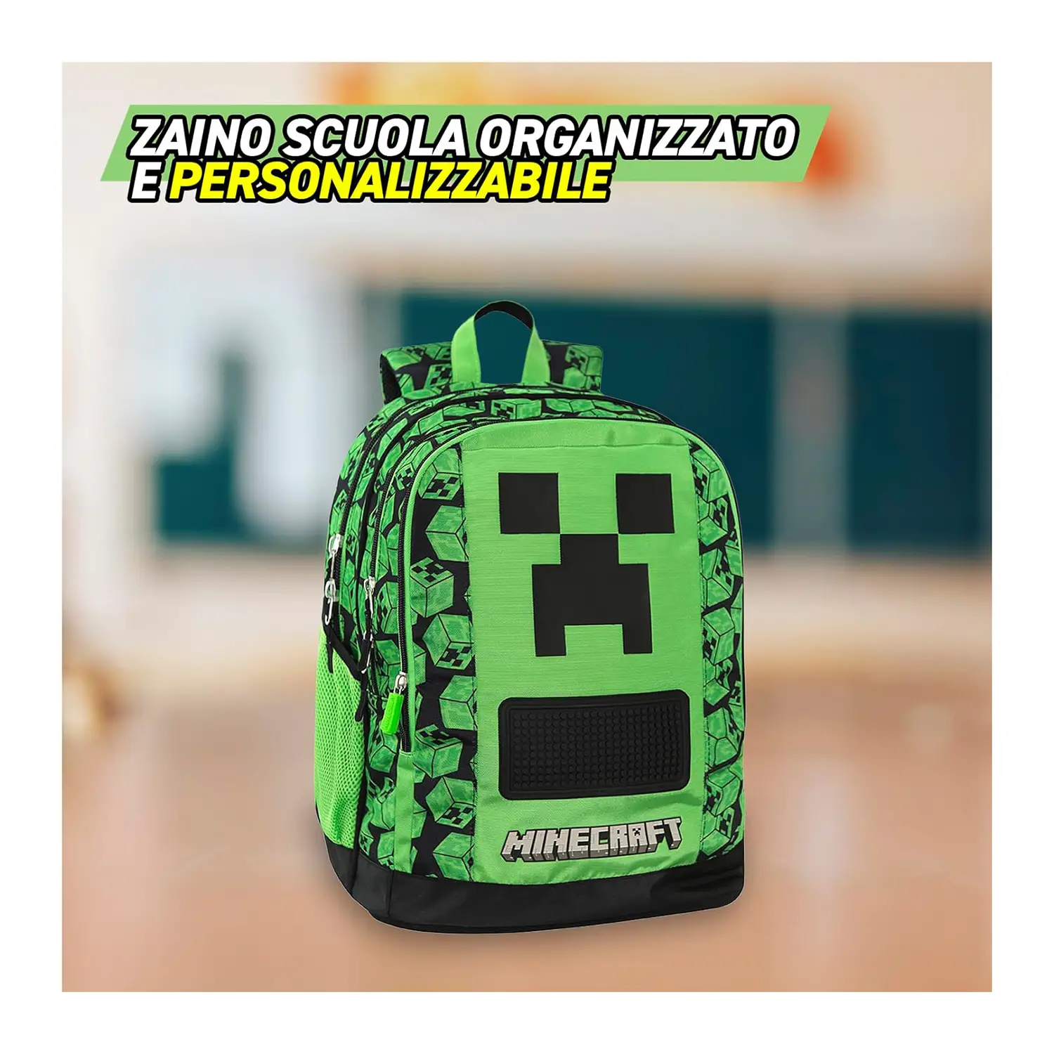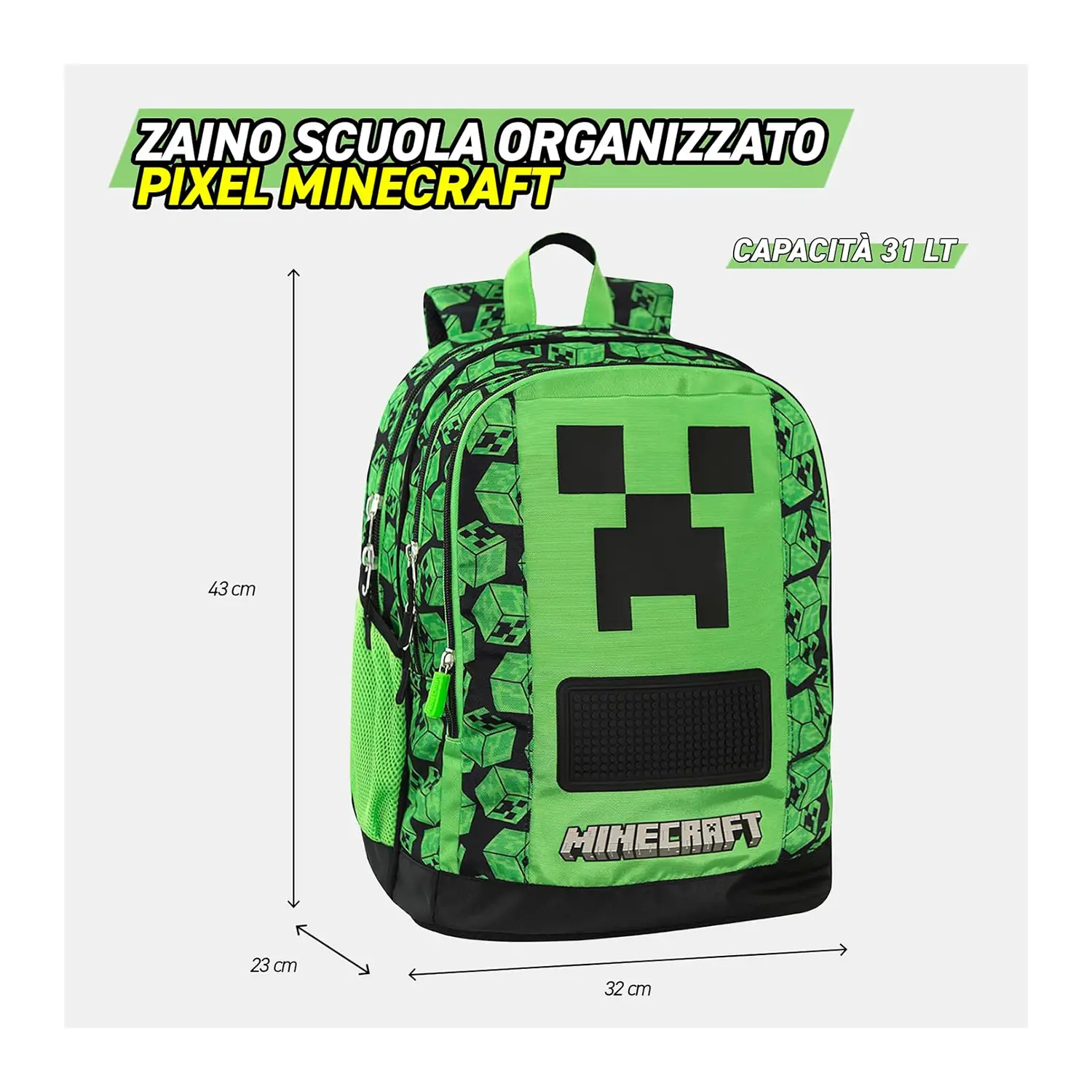 Design Unico Minecraft Zaino Scopri lo zaino scuola Minecraft ufficiale, progettato per gli amanti dei pixel. Con il suo design unico, è perfetto per distinguersi a scuola. Spazioso e Funzionale Questo zaino Minecraft offre due ampi spazi centrali per organizzare libri e quaderni. Ideale per studenti sempre in movimento. Comodità e Resistenza Dotato di spallacci regolabili imbottiti e retro termoformato, lo zaino garantisce comfort e resistenza durante l’uso quotidiano. Praticità e Stile Con tasche laterali in rete e tasca frontale sagomata, questo zaino Minecraft combina praticità e stile per ogni studente.