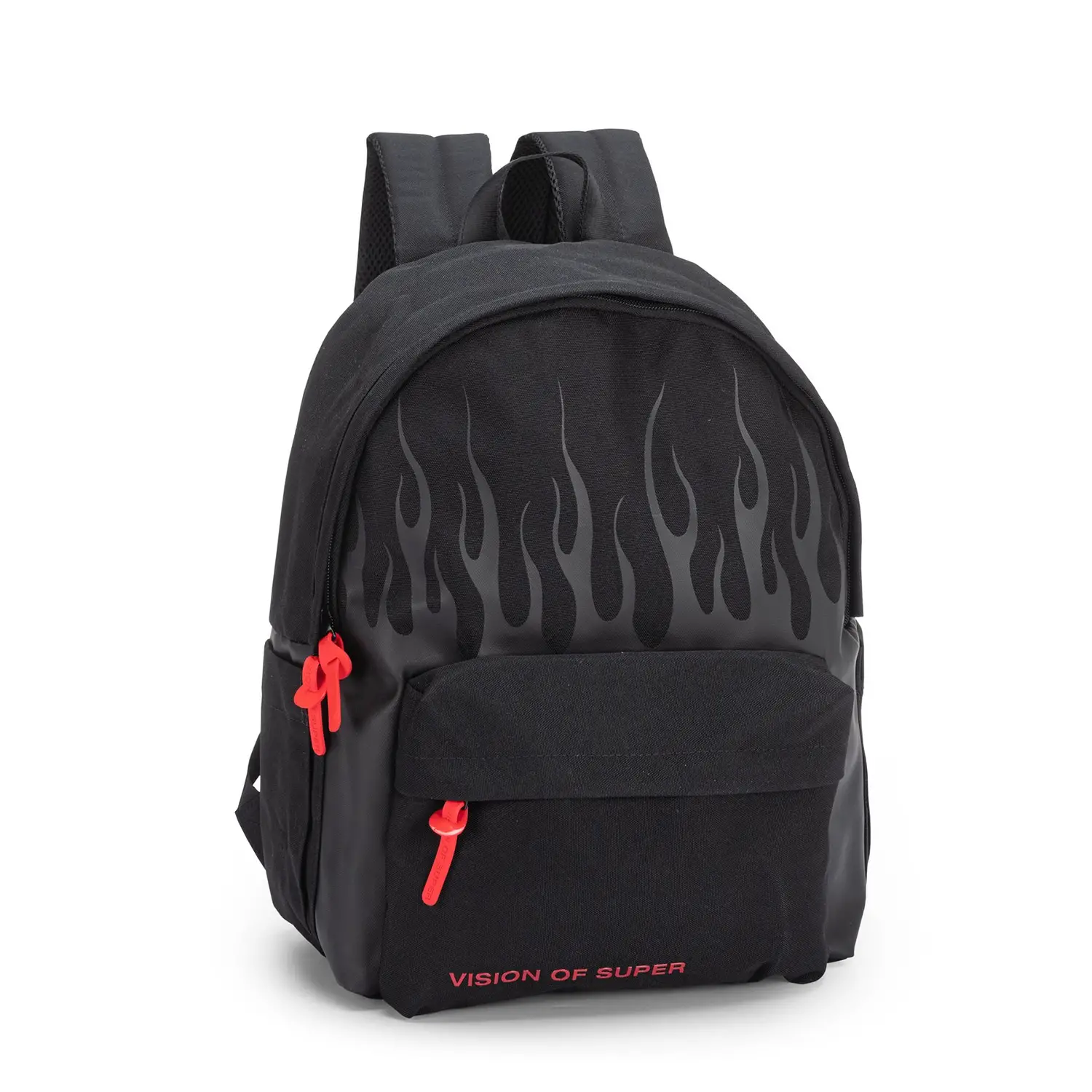 • ✅ Zaino scuola urban Vision of Super con iconiche fiamme nere e dettagli rossi.