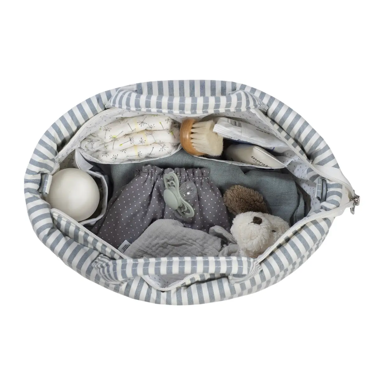 Capiente e perfettamente organizzata Progettata per accompagnare ogni uscita, offre uno spazio interno ben strutturato con tasca plastificata per capi umidi, tasca termica per biberon e scomparti dedicati per avere tutto sempre in ordine.