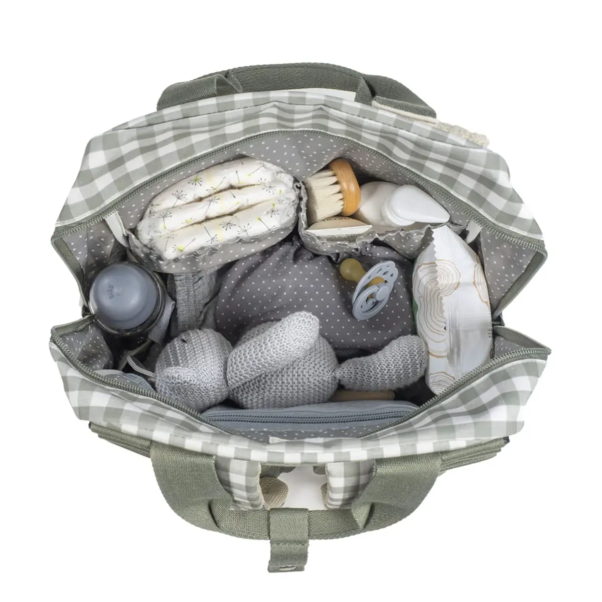 Completo di accessori utili inclusi Include un fasciatoio coordinato e una copertura per biberon o bottiglia, ideali per i cambi e la pappa anche fuori casa, sempre pronti all’uso.