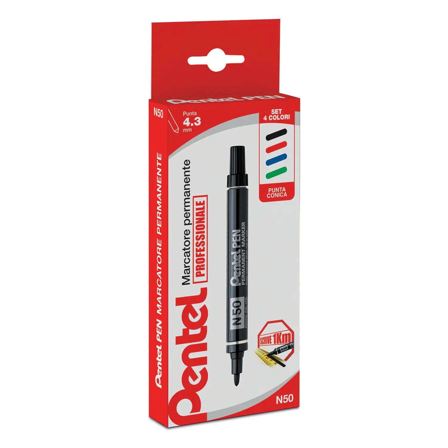 4 Marker Punta Tonda Pentel N50 in 4 colori
