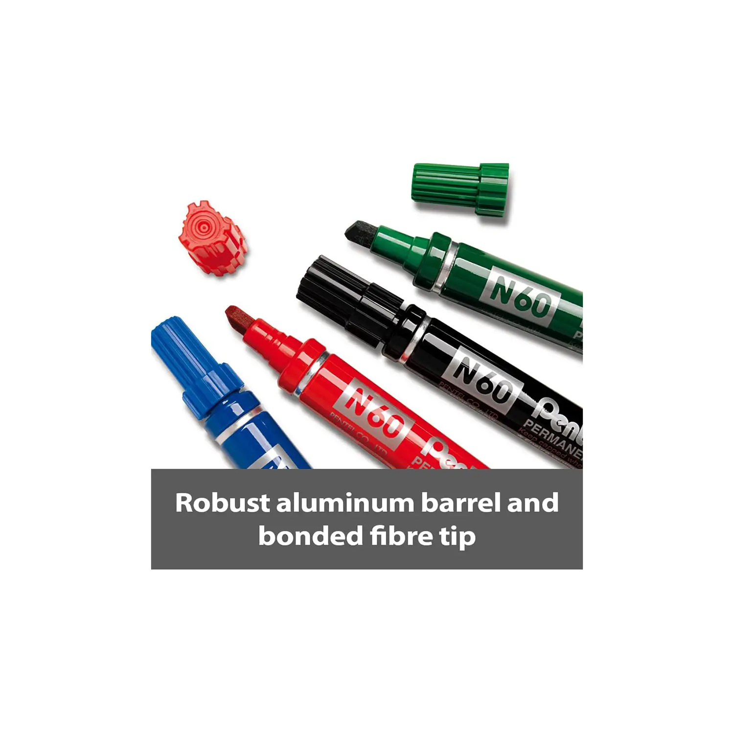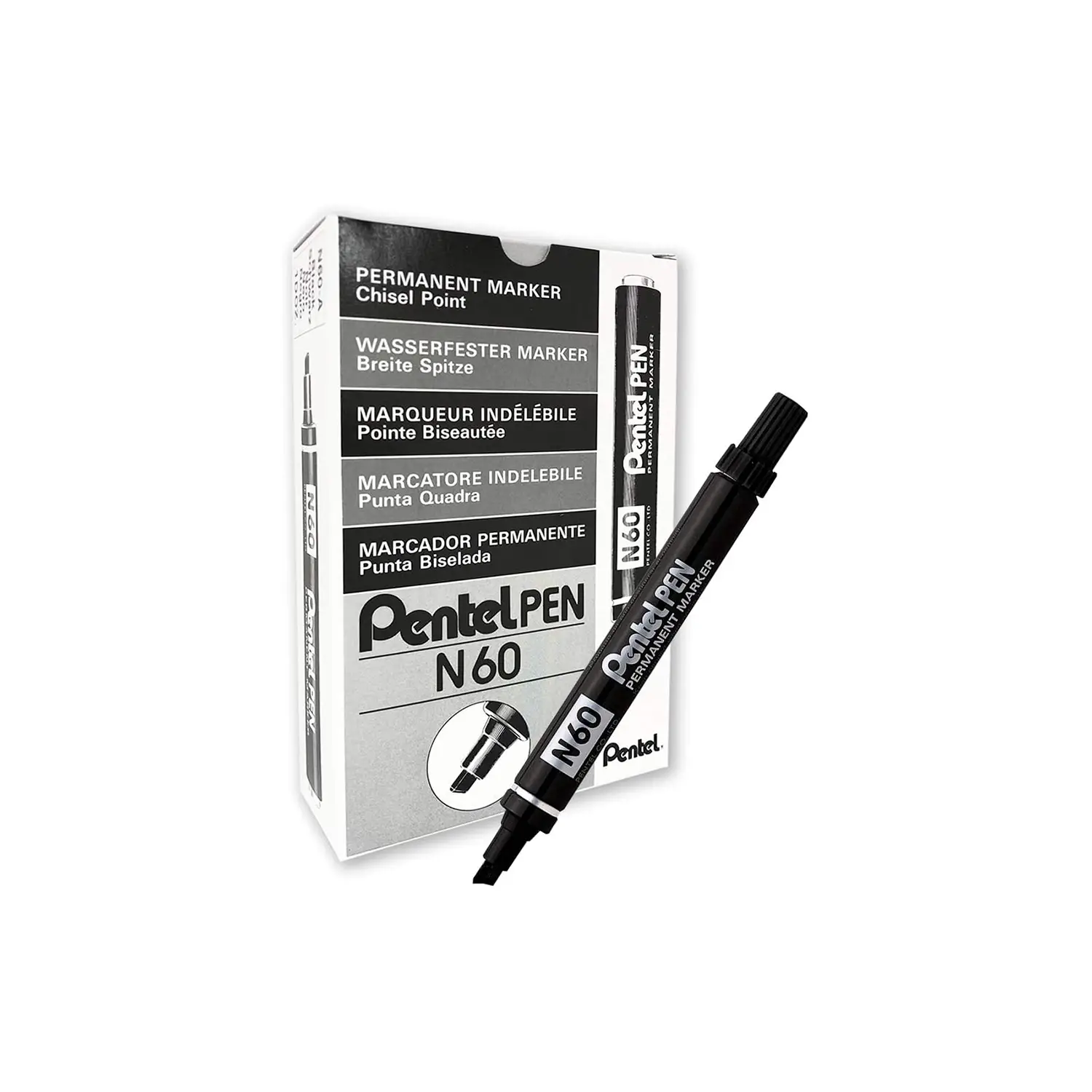 Questo Marcatore Permanente Pentel N60 nero con punta a scalpello è una soluzione affidabile e di alta qualità per tutti coloro che necessitano di una marcatura durevole e chiara.