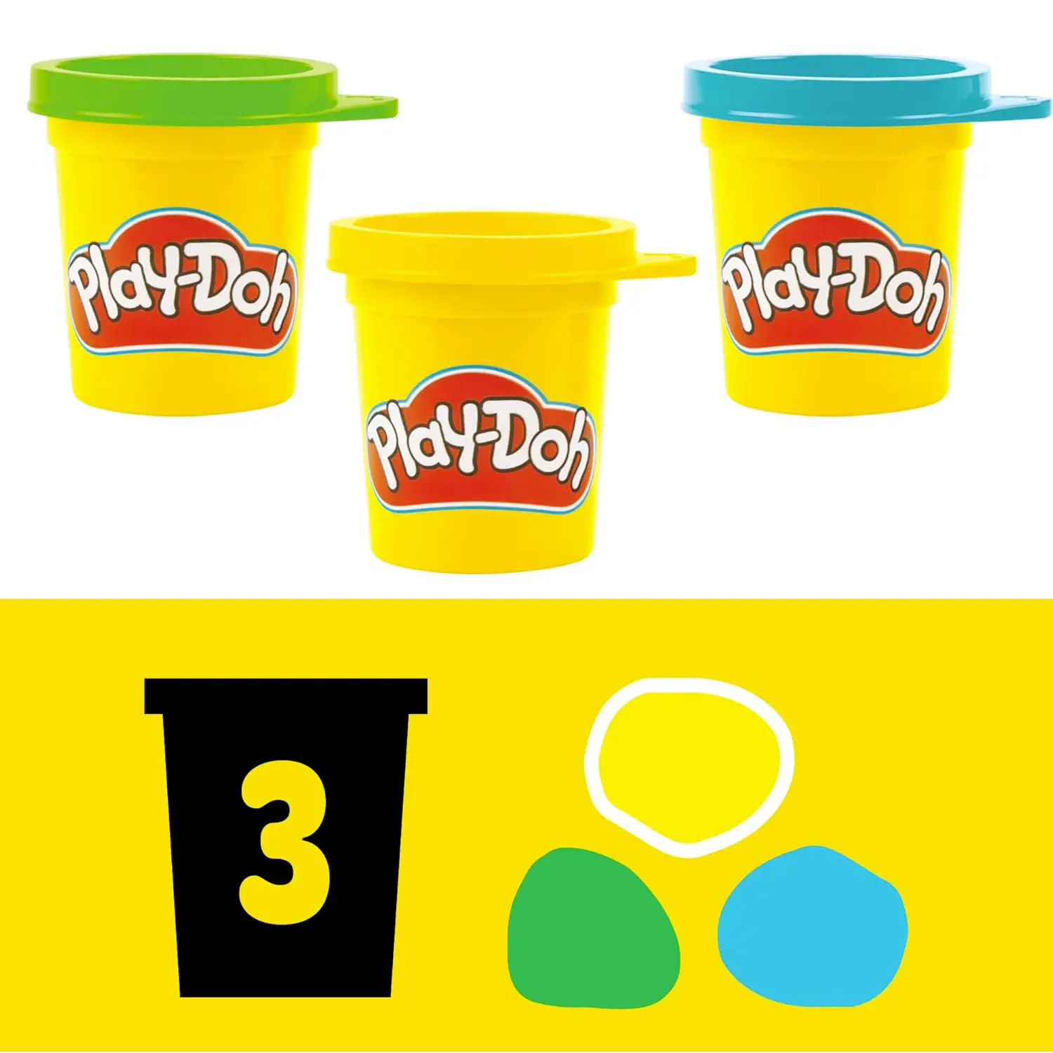 • ✅ 3 vasetti Play-Doh da 56 g (blu, verde, giallo).