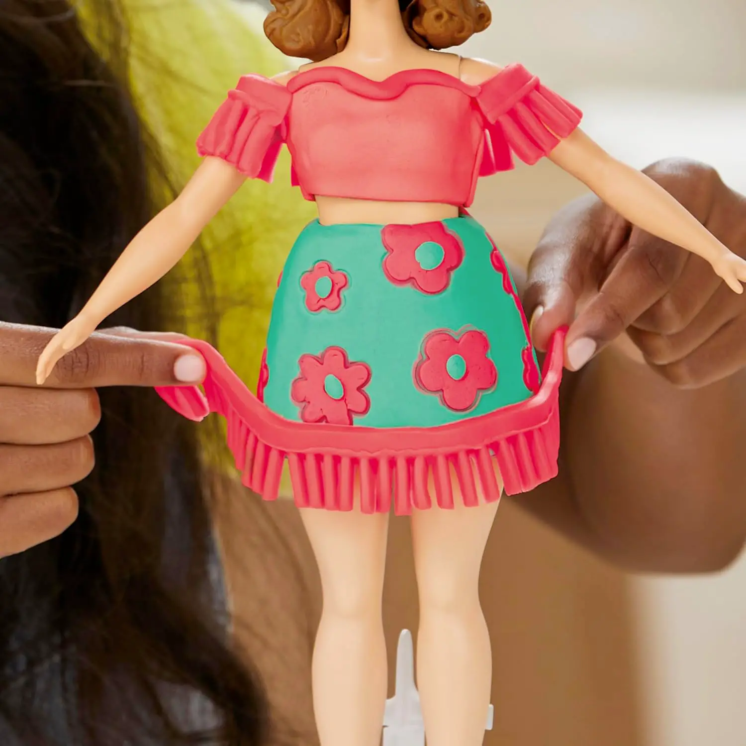 Acconciature personalizzabili - Usa lo stampino per arricciare ciocche di Play-Doh o modella le acconciature a mano. Puoi creare code elaborate, onde romantiche o raccolti fantasiosi, studiati su misura per ogni creazione di abito, aumentando l’autonomia e l’espressione personale.