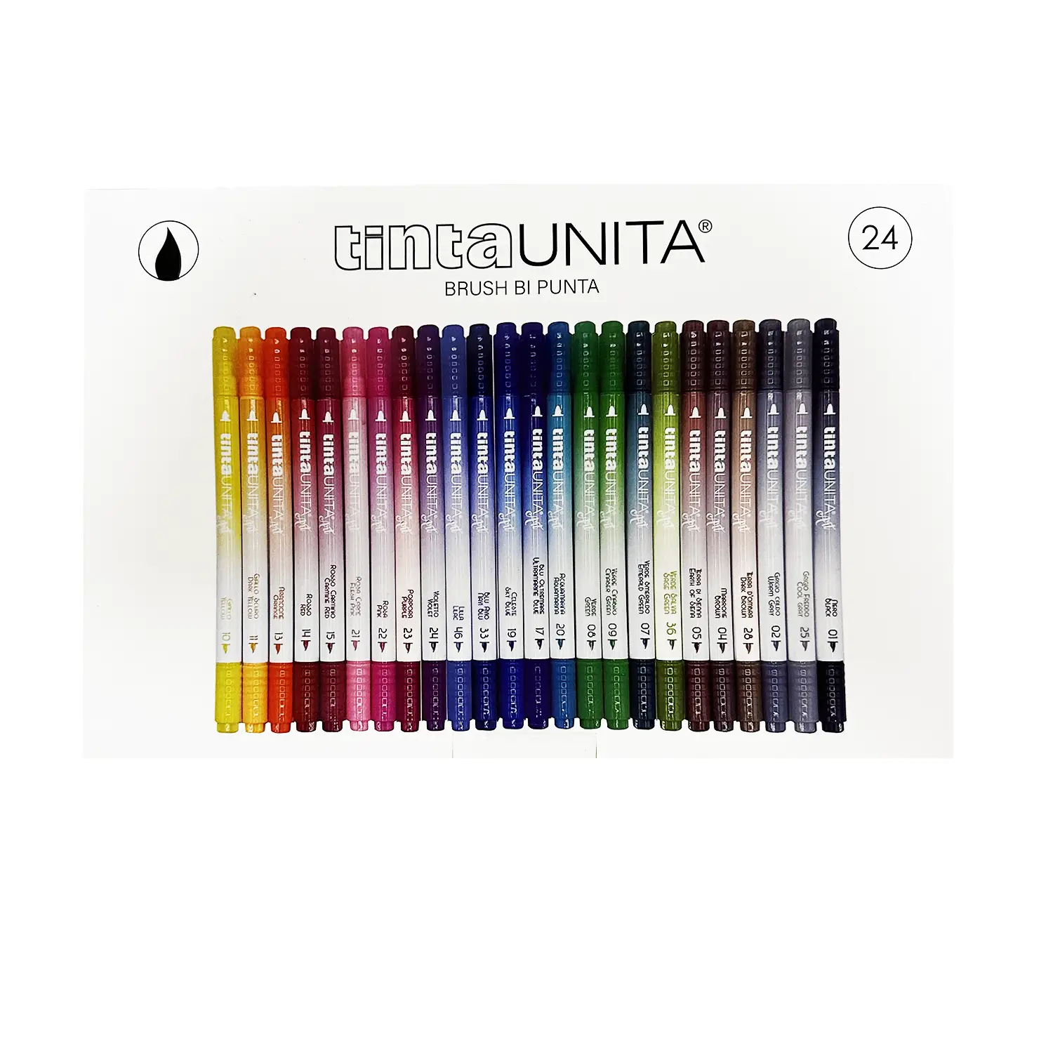Tinta Unita 24 Pennarelli Brush Bi-Punta - Creatività Senza Limiti