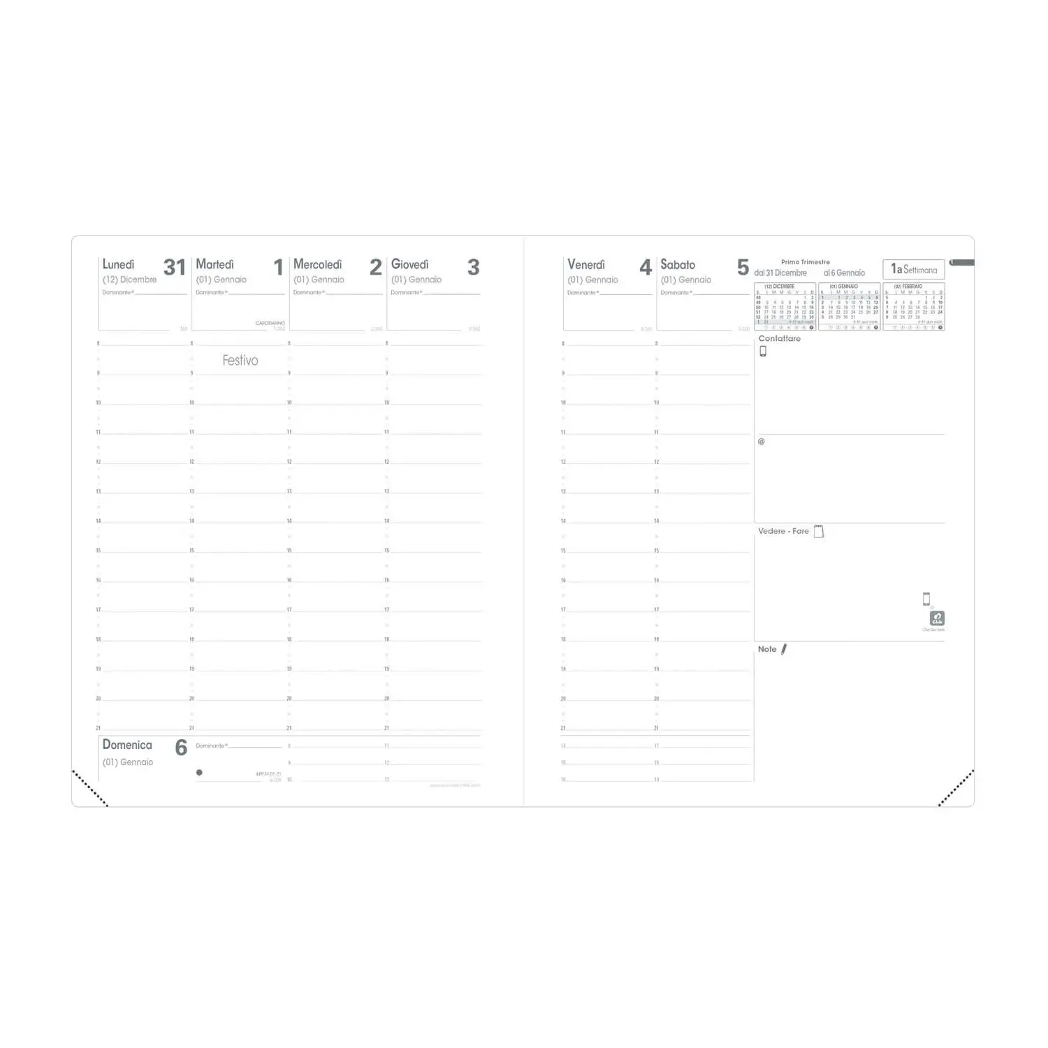 Pianificazione Settimanale Intelligente - L’agenda offre una presentazione settimanale su due pagine, consentendo di avere una visione chiara degli impegni. Spazio dedicato ai tuoi promemoria quotidiani.