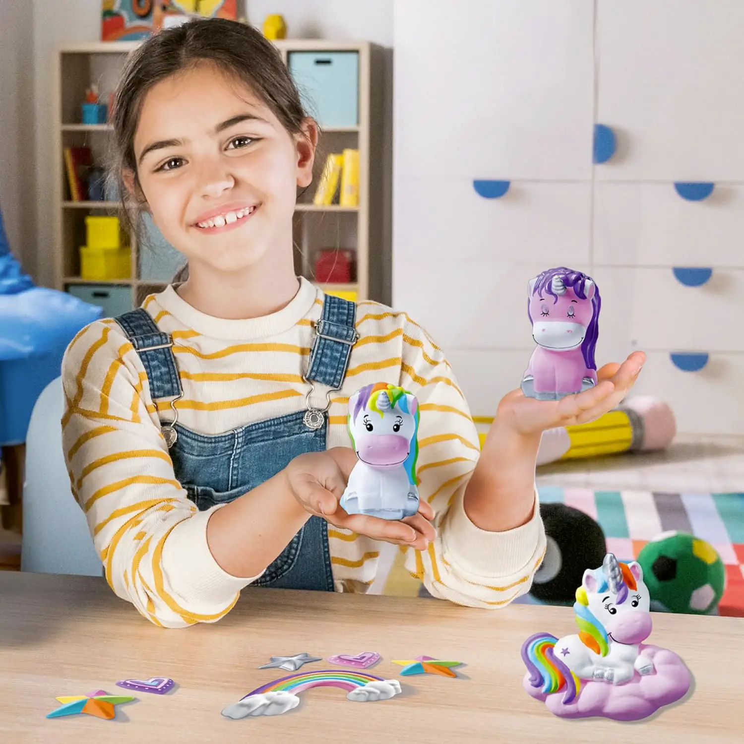 10 personaggi magici da personalizzare - Il kit permette di creare figure a tema unicorno, cuore, stella e arcobaleno. Ogni pezzo è unico e personalizzabile, perfetto per esprimere la propria creatività.