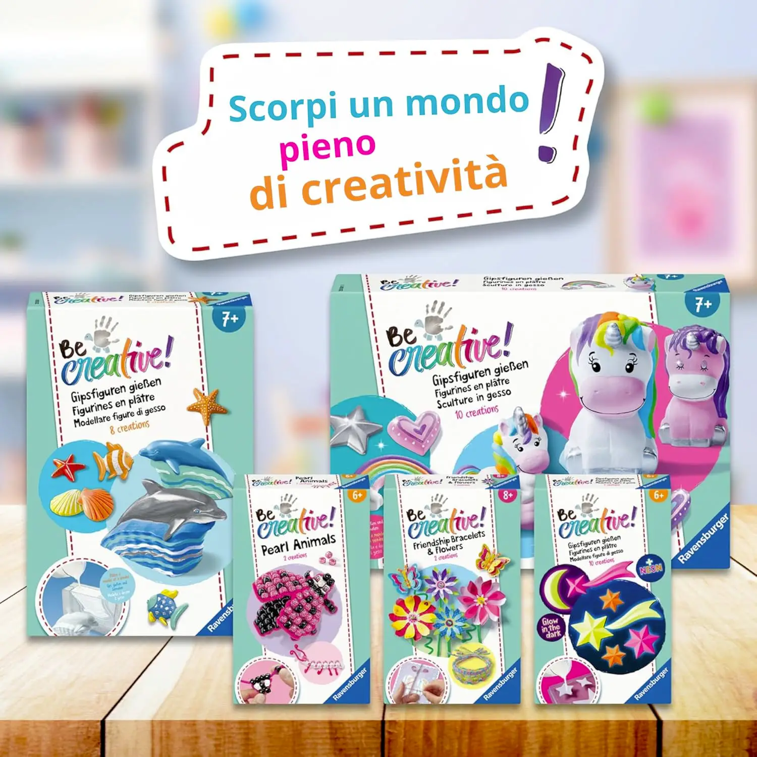 Unicorni creativi per decorare e regalare - Con BeCreative Unicorni di Ravensburger, i bambini possono realizzare 10 opere d’arte in gesso, ideali per decorare la cameretta o come dono speciale per amici e familiari.