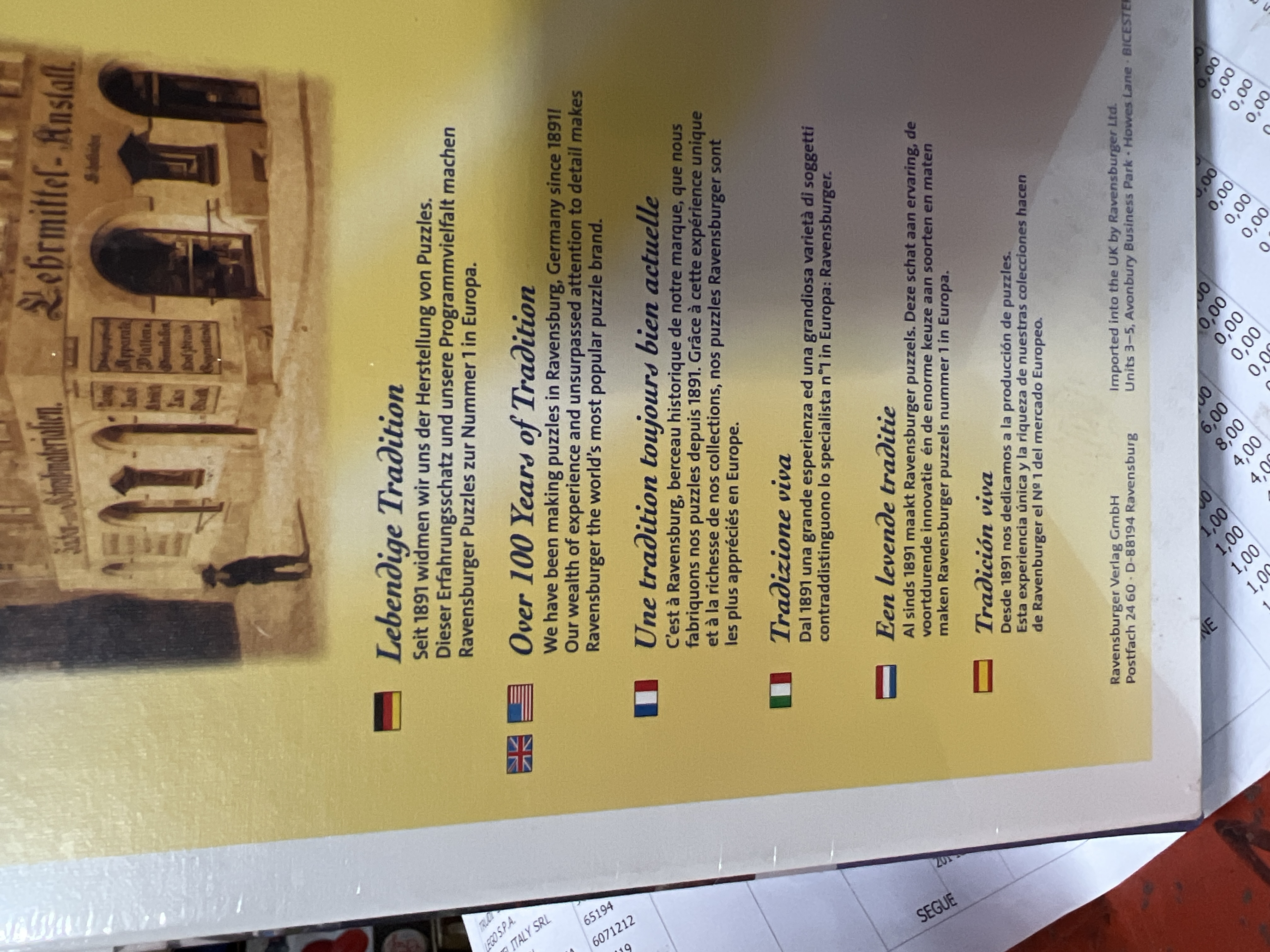 Un puzzle Ravensburger che raffigura un incantevole paesaggio dell’Alsazia; 1000 pezzi per adulti, che una volta terminato misura 70x50 cm