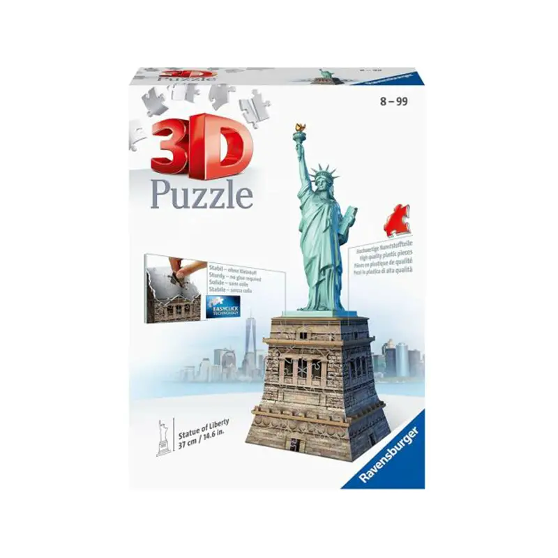 Costruisci uno dei simboli più famosi al mondo con il Puzzle 3D della Statua della Libertà di Ravensburger! Un’esperienza di costruzione unica grazie ai 108 pezzi numerati che si incastrano perfettamente senza bisogno di colla, e agli accessori inclusi per completare la struttura in ogni dettaglio.