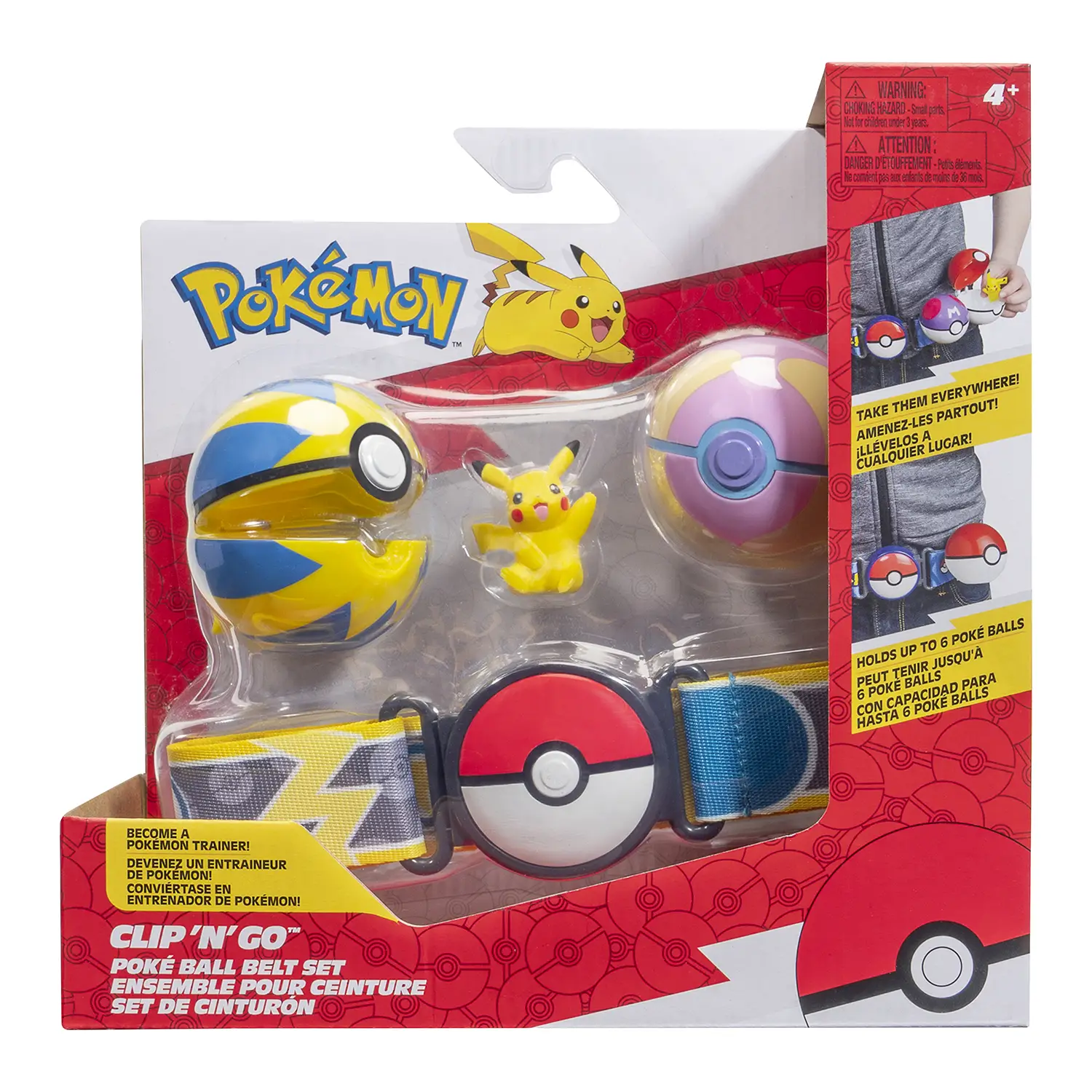 Cintura Regolabile con Clip La cintura regolabile è dotata di clip frontale a forma di Poké Ball e può contenere fino a 6 Poké Ball (compatibili con la linea Clip ‘N’ Go). Ideale per il gioco dinamico e il role play.