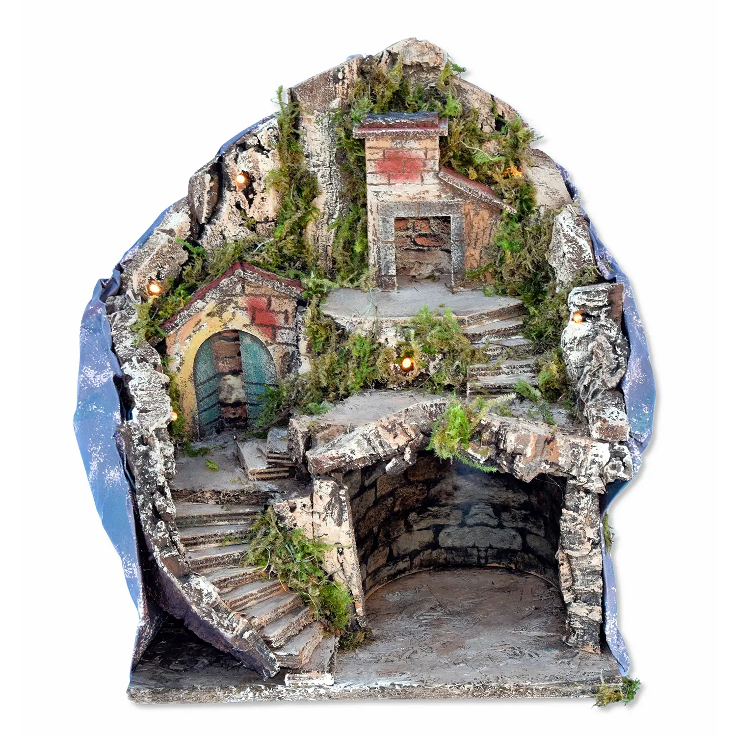 Struttura multilivello: Con scale e porticati su più piani, permette di disporre le statuine creando profondità e movimento nella composizione.